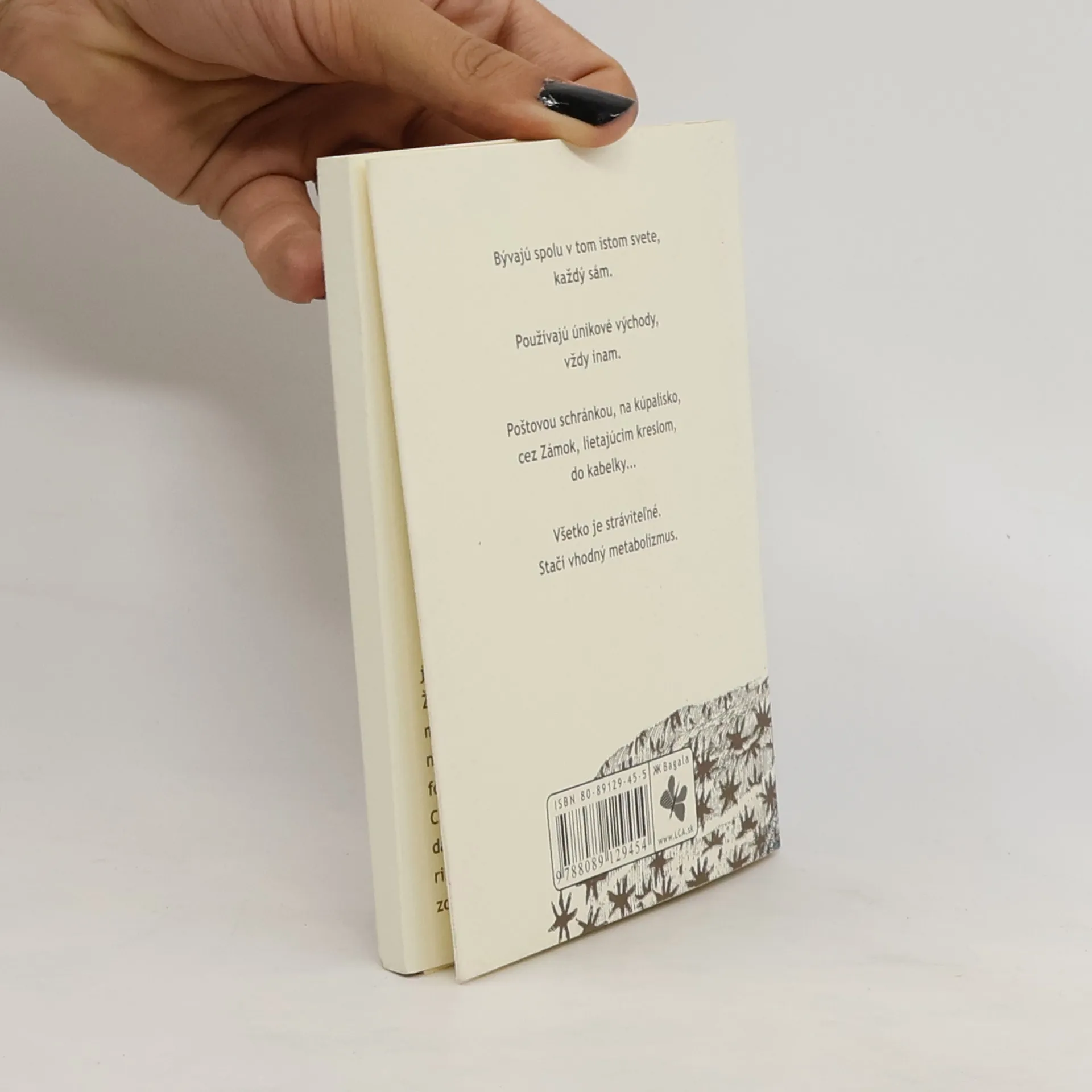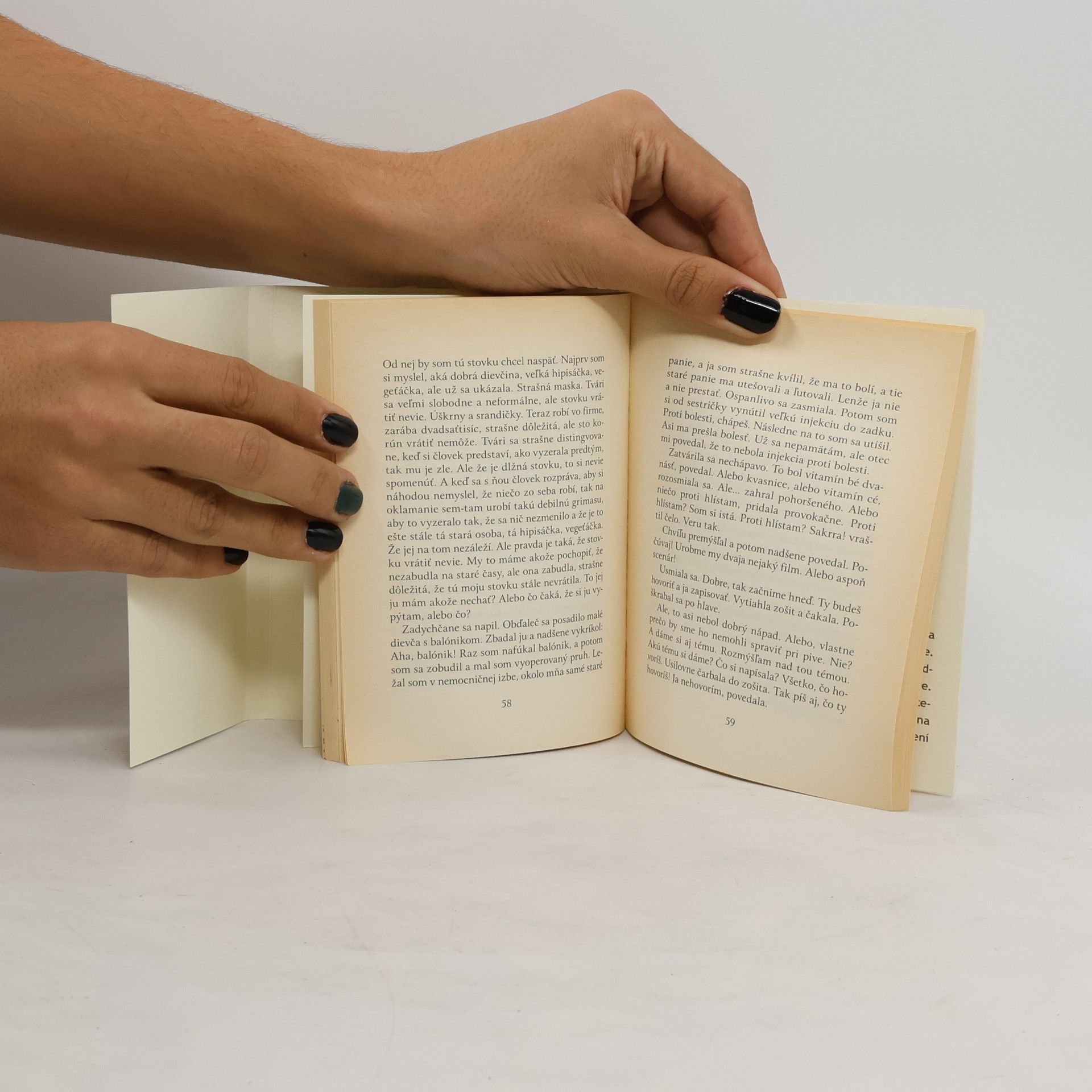 Debutová zbierka poviedok mladej prozaičky, študentky filmovej a televíznej dramaturgie na neveľkom priestore láskavou iróniou, sviežo a hravo načrtáva mentalitu a zvyky dnešnej mládeže. Autorka s vycibreným zmyslom pre drobnokresbu opisuje síce banálne životné situácie, avšak nevšedným pohľadom. Jej pôsobivé, slovesne i ľudsky zrelé rozprávačské dielka si určite získajú priazeň čitateľa.