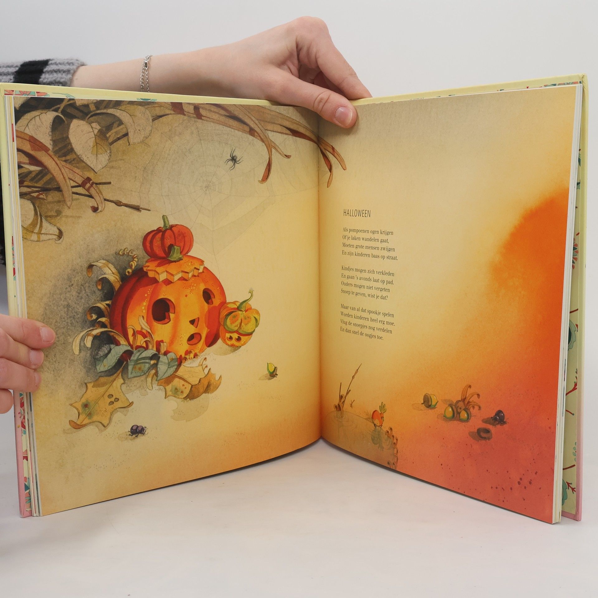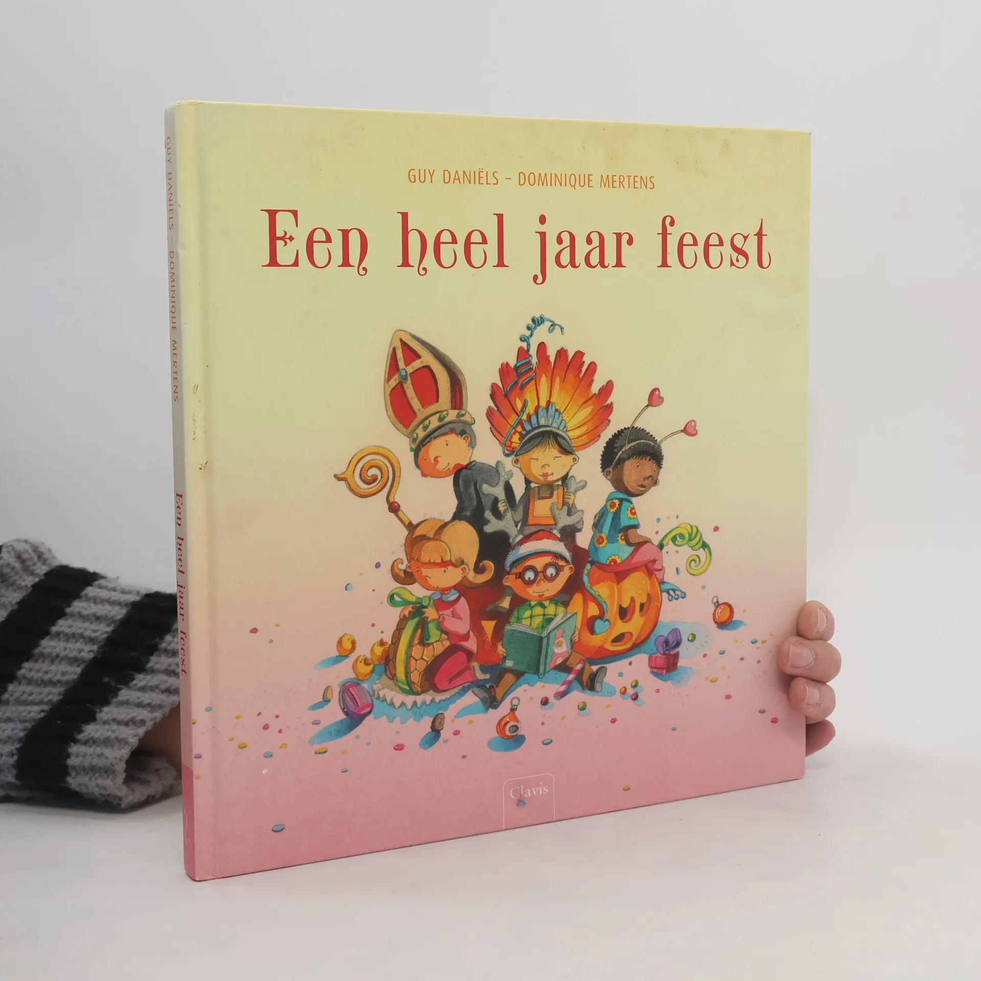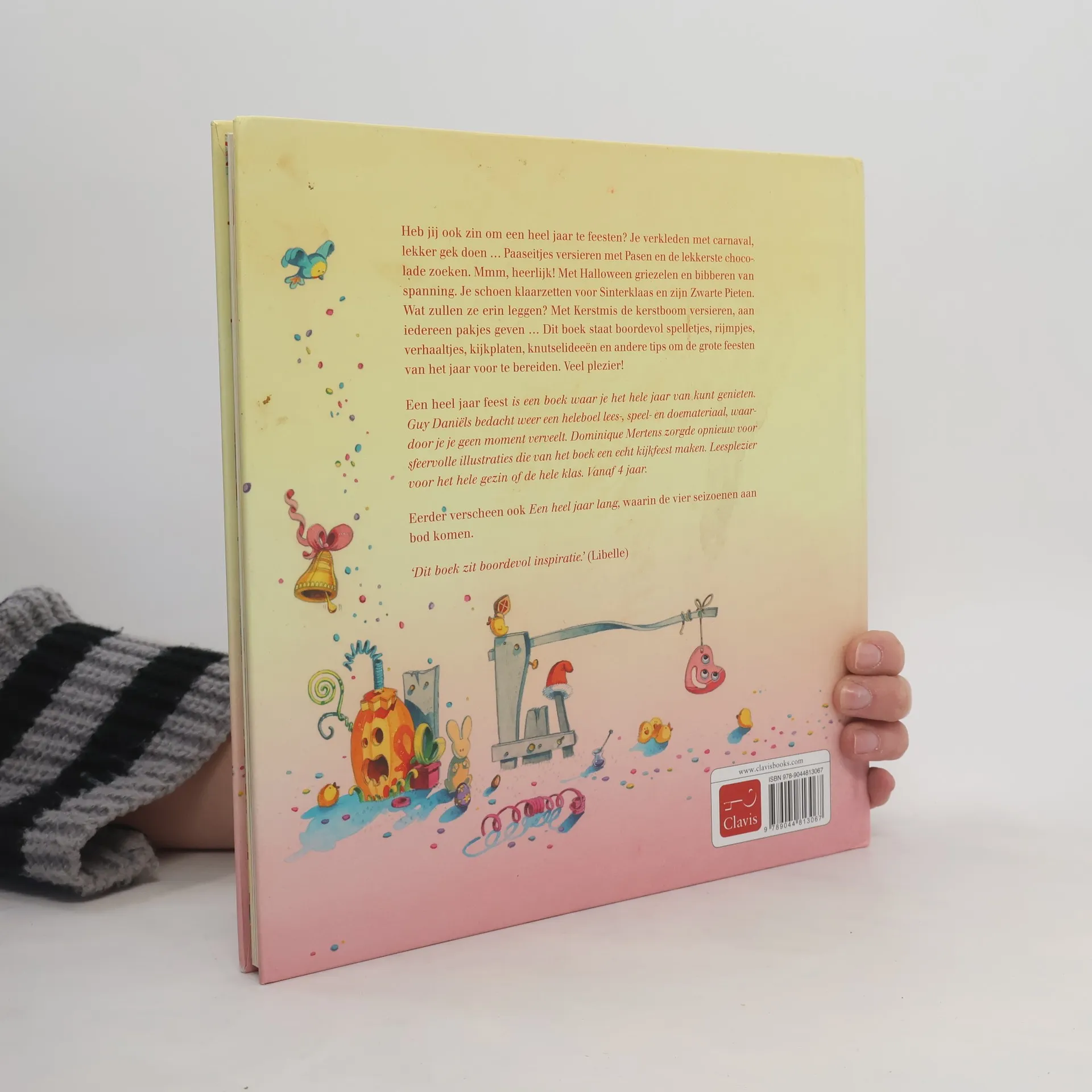 Versjes, liedjes, verhalen, zoekplaten en knutselideeën rond de feesten van het jaar, zoals carnaval, Pasen, Halloween, Sinterklaas en Kerstmis. Met veel, ook paginagrote, kleurentekeningen. Vanaf ca. 4 jaar.