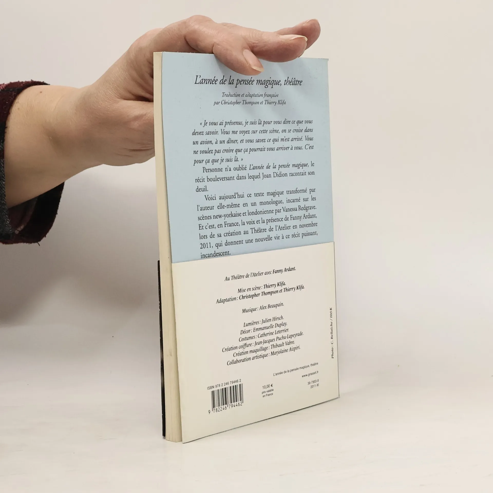 Je vous ai prevenus, je suis la pour vous dire ce que vous devez savoir. Vous me voyez sur cette scene, on se croise dans un avion, a un diner, et vous savez ce qui m'est arrive. Vous ne voulez pas croire que ca pourrait vous arriver a vous. C'est pour ca que je suis la. Personne n'a oublie L'Annee de la pensee magique , le recit bouleversant dans lequel Joan Didion racontait son deuil.Voici aujourd'hui ce texte magique transforme par l'auteur elle-meme en un monologue, incarne sur les scenes new-yorkaise et londonienne par Vanessa Redgrave. Et c'est, en France, la voix et la presence de Fanny Ardant, lors de sa creation au theatre de l'Atelier en novembre 2011, qui donnent une nouvelle vie a ce recit puissant, incandescent.