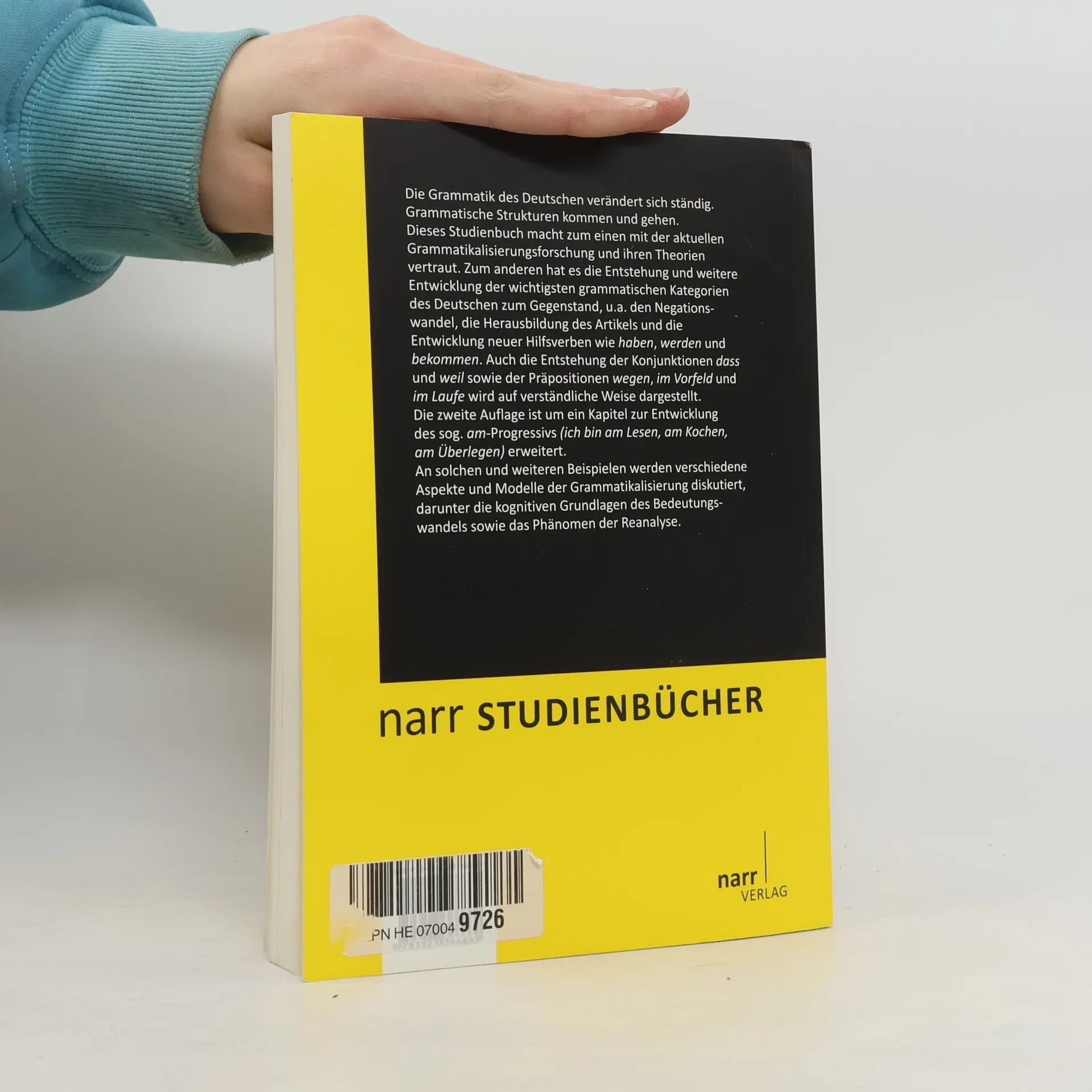 Die Grammatik des Deutschen verändert sich ständig. Grammatische Strukturen kommen und gehen. Im Fall des (jüngeren) Perfekts kann man gut beobachten, wie es seit mittelhochdeutscher Zeit das (ältere) Präteritum mehr und mehr überlagert und verdrängt (vgl. heute: danke, ich habe schon gegessen, aber nicht *danke, ich aß schon). Dieses Studienbuch führt zum Einen in die aktuelle Grammatikalisierungsforschung und ihre Theorien ein. Zum Anderen hat es die Entstehung und weitere Entwicklung der wichtigsten grammatischen Kategorien des Deutschen zum Gegenstand, z. B. den Negationswandel, die Herausbildung des Artikels und die Entwicklung neuer Hilfsverben wie haben, werden und bekommen. Auch die Entstehung neuer Konjunktionen wie dass, weil, obwohl und Präpositionen wie neben, mithilfe, im Vorfeld wird auf verständliche Weise dargestellt. An solchen und anderen Beispielen werden verschiedene Aspekte und Modelle der Grammatikalisierung diskutiert wie z. B. die kognitiven Grundlagen des Bedeutungswandels oder das Phänomen der Reanalyse. Dieses Buch richtet sich an Studierende wie Lehrende der germanistischen Linguistik und bietet Einblicke in aktuelle Forschungsgebiete der historischen Sprachwissenschaft. --------------------------