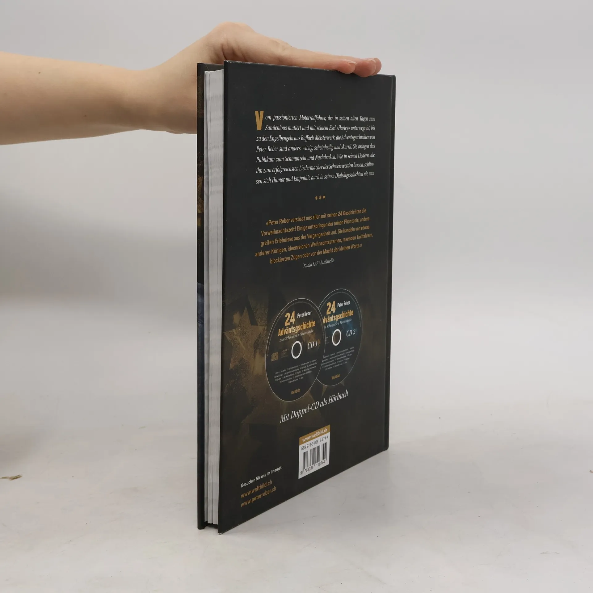 Vom passionierten Motorradfahrer, der in seinen alten Tagen zum Samichlous mutiert und mit seinem Esel „Harley“ unterwegs ist, bis zu den Engelbengeln aus Raffaels Meisterwerk, die Adventsgeschichten von Peter Reber sind anders: witzig, scheinheilig und skuril. Sie bringen das Publikum zum Schmunzeln und Nachdenken. So geschehen im Dezember 2015, als Peter Reber in der SRF Musikwelle täglich eine der 24 Geschichten las. Wie in seinen Liedern, die ihn zum erfolgreichsten Liedermacher der Schweiz werden liessen, schliessen sich Humor und Empathie auch in seinen Dialektgeschichten nie aus.