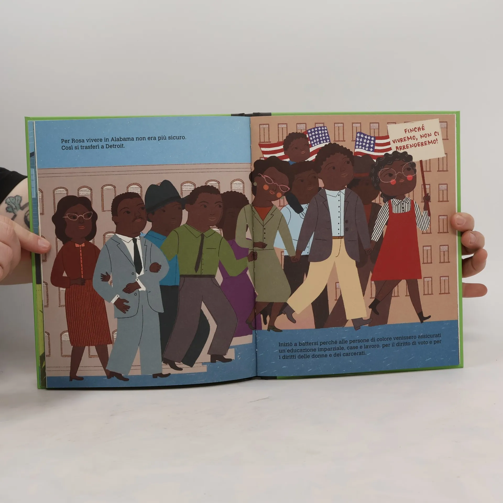 La piccola Rosa si chiedeva continuamente quale differenza ci fosse tra bianchi e neri: perché mai qualche adulto aveva deciso che dovevano frequentare scuole diverse, usare bagni diversi e sedere sull'autobus in posti diversi? Per lei tutti erano uguali, e perciò ogni distinzione non aveva senso! Fu così che da grande decise di cambiare queste assurde regole e lottare perché ogni persona fosse trattata allo stesso modo, a prescindere dal colore della sua pelle. Rosa ha realizzato il suo sogno. E tu? Età di lettura: da 6 anni.