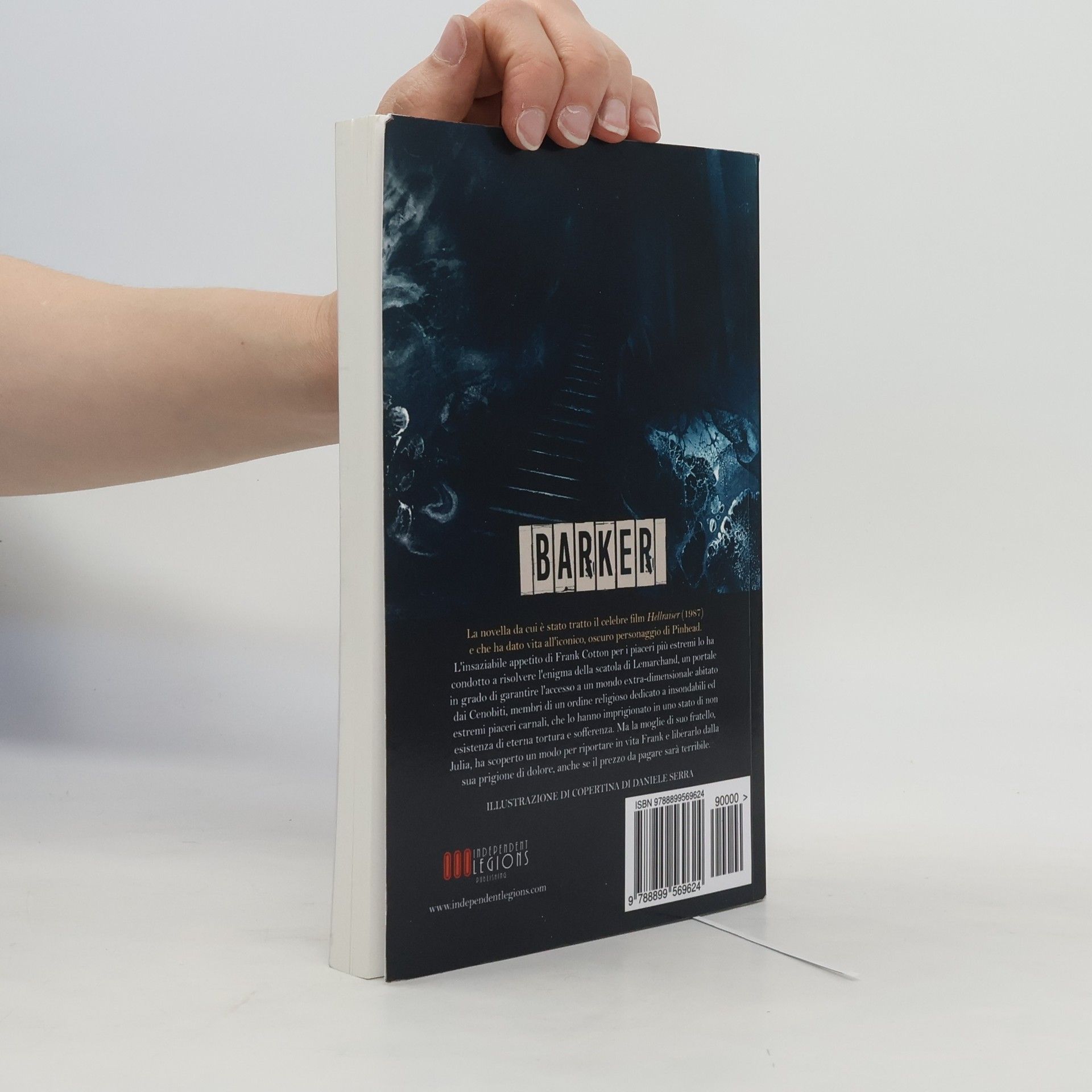 La novella da cui è stato tratto il celebre film Hellraiser (1987) e che ha dato vita all'iconico personaggio di Pinhead. L'insaziabile appetito di Frank Cotton per i piaceri più estremi lo ha condotto a risolvere l'enigma della scatola di Lemarchand, un portale in grado di garantire l'accesso a un mondo extra-dimensionale abitato dai Cenobiti, membri di un ordine religioso dedicato a insondabili ed estremi piaceri carnali, che lo hanno imprigionato in uno stato di non-esistenza di eterna tortura e sofferenza. Ma la moglie di suo fratello, Julia, ha scoperto un modo per riportare in vita Frank e liberarlo dalla sua prigione di dolore, anche se il prezzo da pagare sarà terribile. Illustrazione di copertina di Daniele Serra. 185 pagine - lingua Italiana.​ Fonte: Sito dell'editore Indipendent Legions.