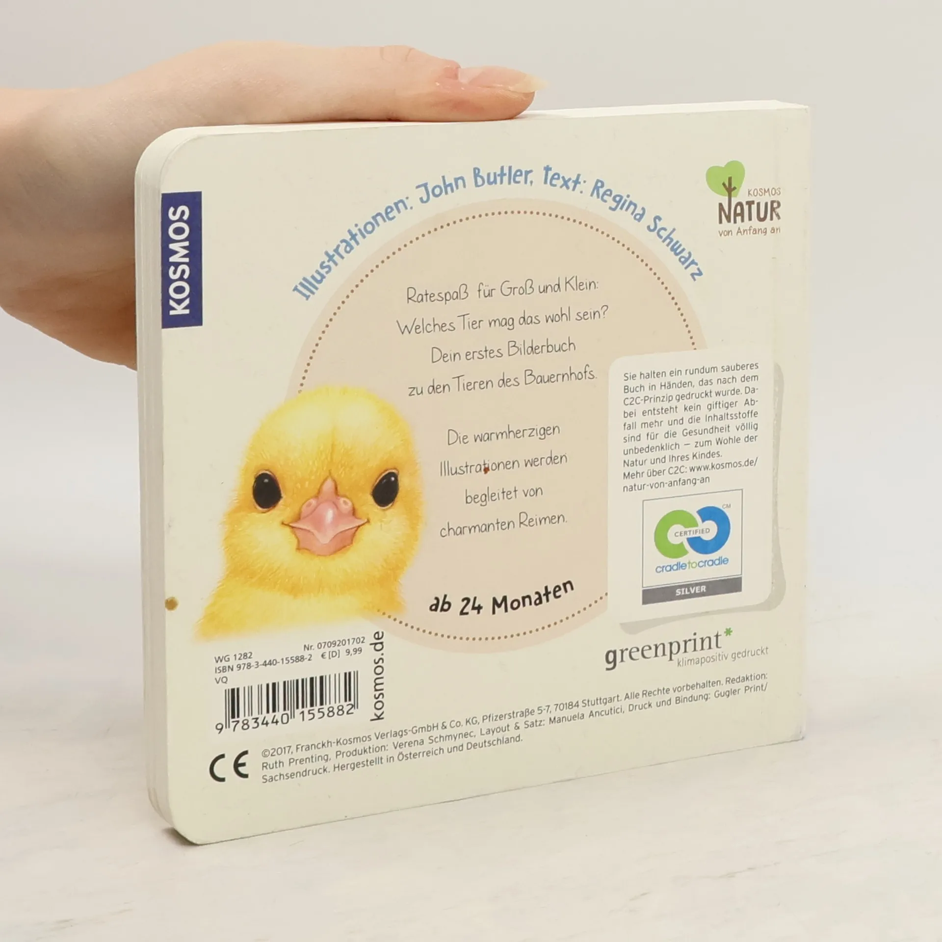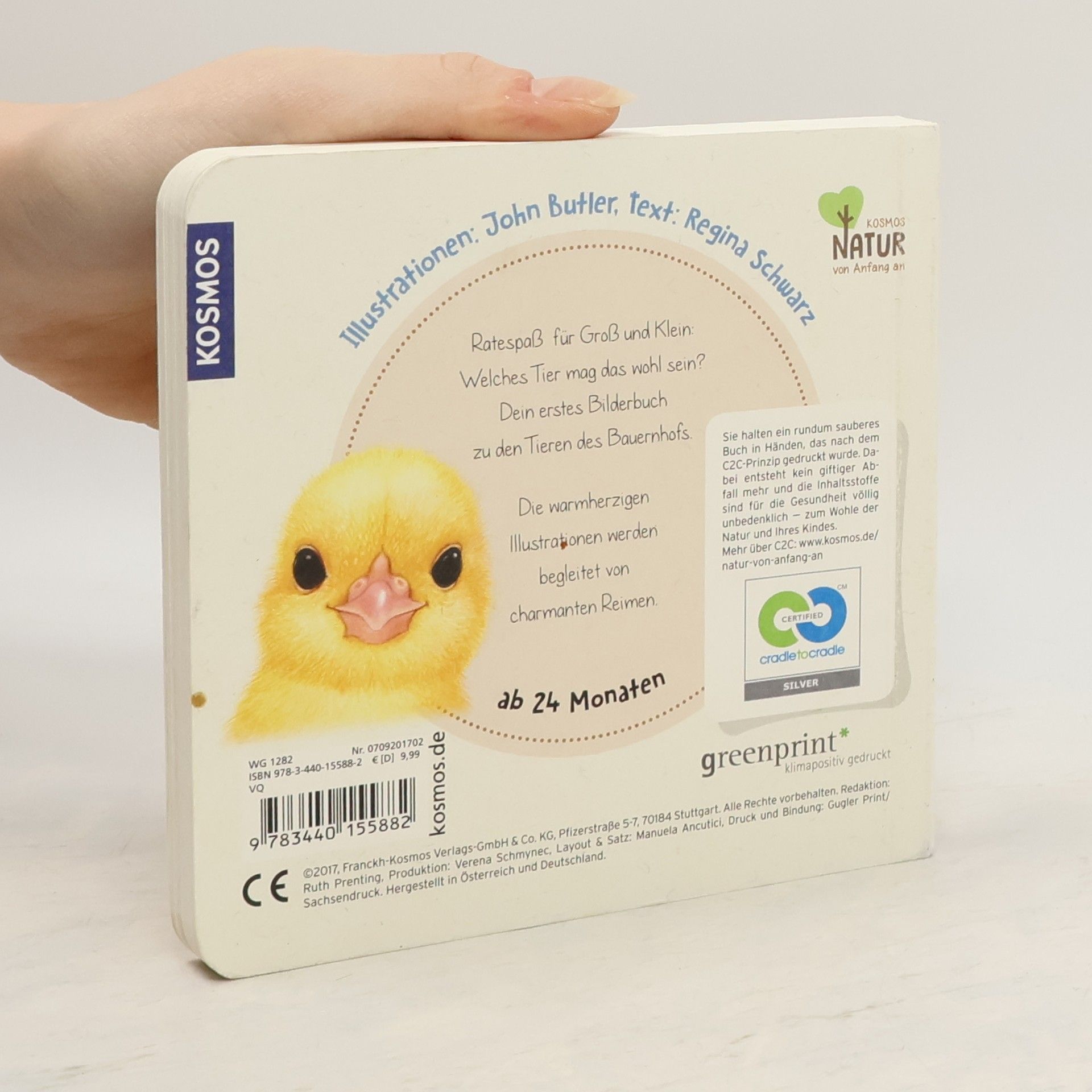 In diesem liebevoll und naturnah gestalteten Sachbilderbuch haben sich Bauernhoftiere wie Küken, Schaf, Esel, Ziege und Kuh versteckt. Es gibt viel zu entdecken und zu raten. Welches Tier verbirgt sich hier? Steckt die Antwort vielleicht in den lustigen Reimen? Wer umblättert, findet die Lösung gleich auf der nächsten Seite. Ein großer Such- und Ratespaß für Kinder ab 2 Jahren. KOSMOS Natur von Anfang an – konsequent nachhaltig. Produziert nach dem zertifizierten Cradle-to-Cradle-Prinzip.