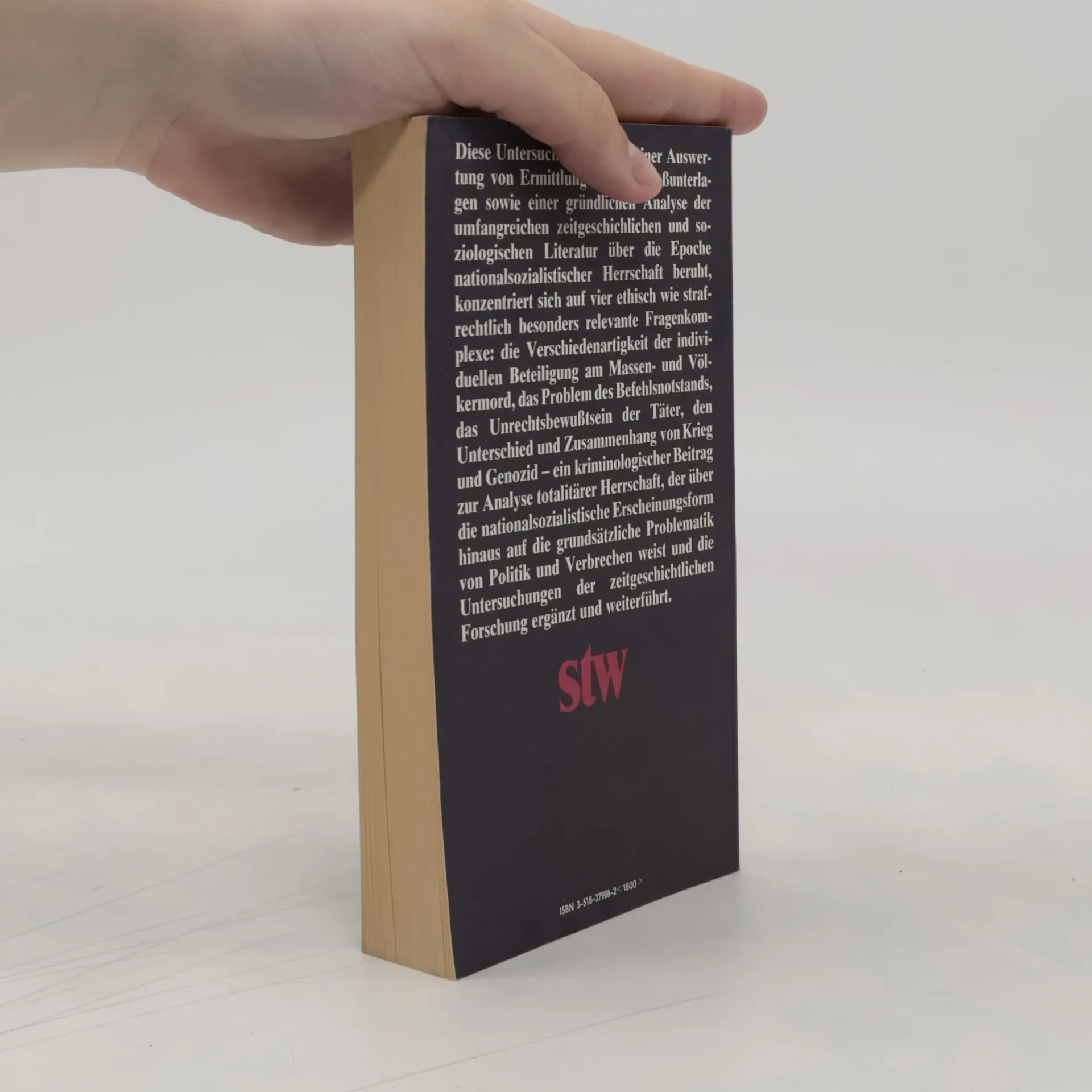 Diese Untersuchung, die auf einer Auswertung von Ermittlungs- und Prozeßunterlagen sowie einer gründlichen Analyse der umfangreichen zeitgeschichtlichen und soziologischen Literatur über die Epoche nationalsozialistischer Herrschaft beruht, konzentriert sich auf vier ethisch wie strafrechtlich besonders relevante Fragenkomplexe: die Verschiedenartigkeit der individuellen Beteiligung am Massen- und Völkermord, das Problem des Befehlsnotstands, das Unrechtsbewußtsein der Täter, den Unterschied und Zusammenhang von Krieg und Genozid – ein kriminologischer Beitrag zur Analyse totalitärer Herrschaft, der über die nationalsozialistische Erscheinungsform hinaus auf die grundsätzliche Problematik von Politik und Verbrechen weist und die Untersuchungen der zeitgeschichtlichen Forschung ergänzt und weiterführt.