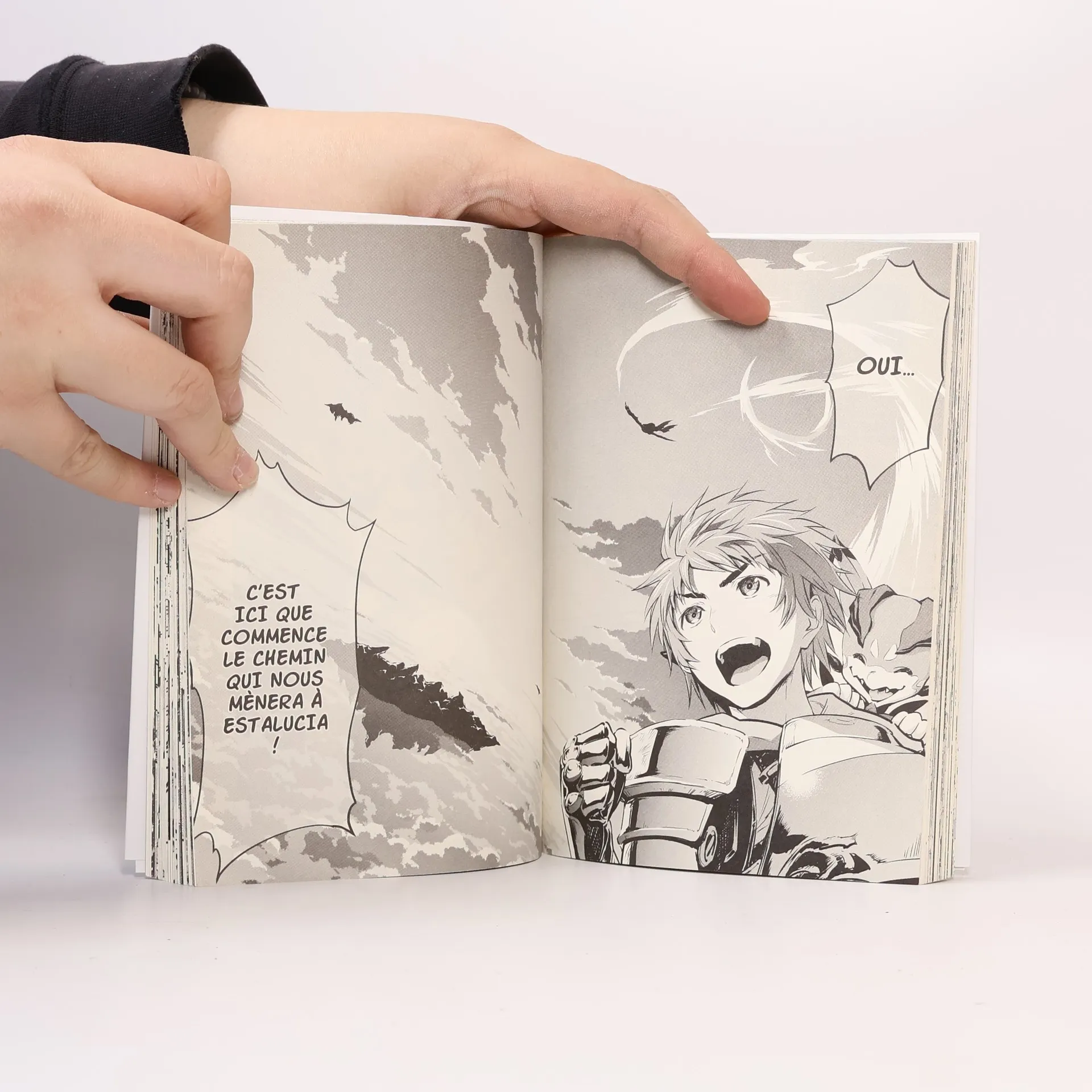 Il existe un monde où d’innombrables îles flottent dans une mer de nuages… Un monde abandonné par les dieux. Gran est un jeune garçon qui rêve de découvrir Estalucia, l’île aux étoiles. Un jour, il fait la connaissance de Lyria, une fille aux cheveux bleus qui se trouve être poursuivie par le redoutable “Premier Empire”. Ils ne le savent pas encore, mais cette rencontre marque le début d’une fantastique épopée à travers les cieux. Une épopée céleste vous tend les bras ! Dans un monde où des îles flottent dans une mer de nuages, Gran, un jeune garçon et son compagnon Vyrn, un étrange lézard ailé, rêvent d’aventures qui les emporteraient loin de leur village de Zinkenstill. Un jour, alors que leur île est attaquée, ils font la rencontre de Lyria, une mystérieuse jeune fille. Seule détentrice d’un pouvoir légendaire permettant de commander aux créatures primordiales, elle fuit l’Empire Erste, nation totalitaire qui tente de régner sur ce monde ! Pour échapper à l’Empire, Gran et Lyria partent en quête d’Estalucia, la mythique île aux étoiles évoquée dans la lettre laissée par le père disparu de Gran…