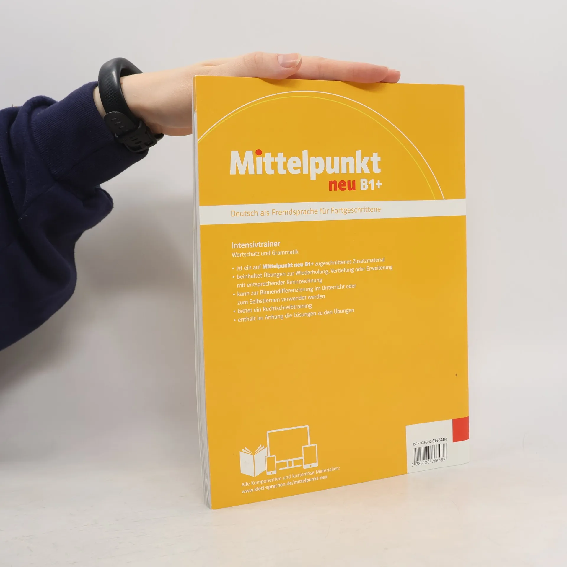 Intensivtrainer Wortschatz und Grammatik dodatkowy material cwiczeniowy skorelowany z tresciami kursu Mittelpunkt neu B1 zawiera cwiczenia powtorkowe utrwalajace i rozszerzajace tresci z kursu dotyczace zagadnien leksykalnych i gramatycznych z publikacji mozna korzystac zarowno na zajeciach praca z uczniem szybciej pracujacym jak i w pracy indywidualnej w domu oferuje trening ortograficzny Rechtschreibtraining na koncu ksiazki odpowiedzi do wszystkich cwiczen