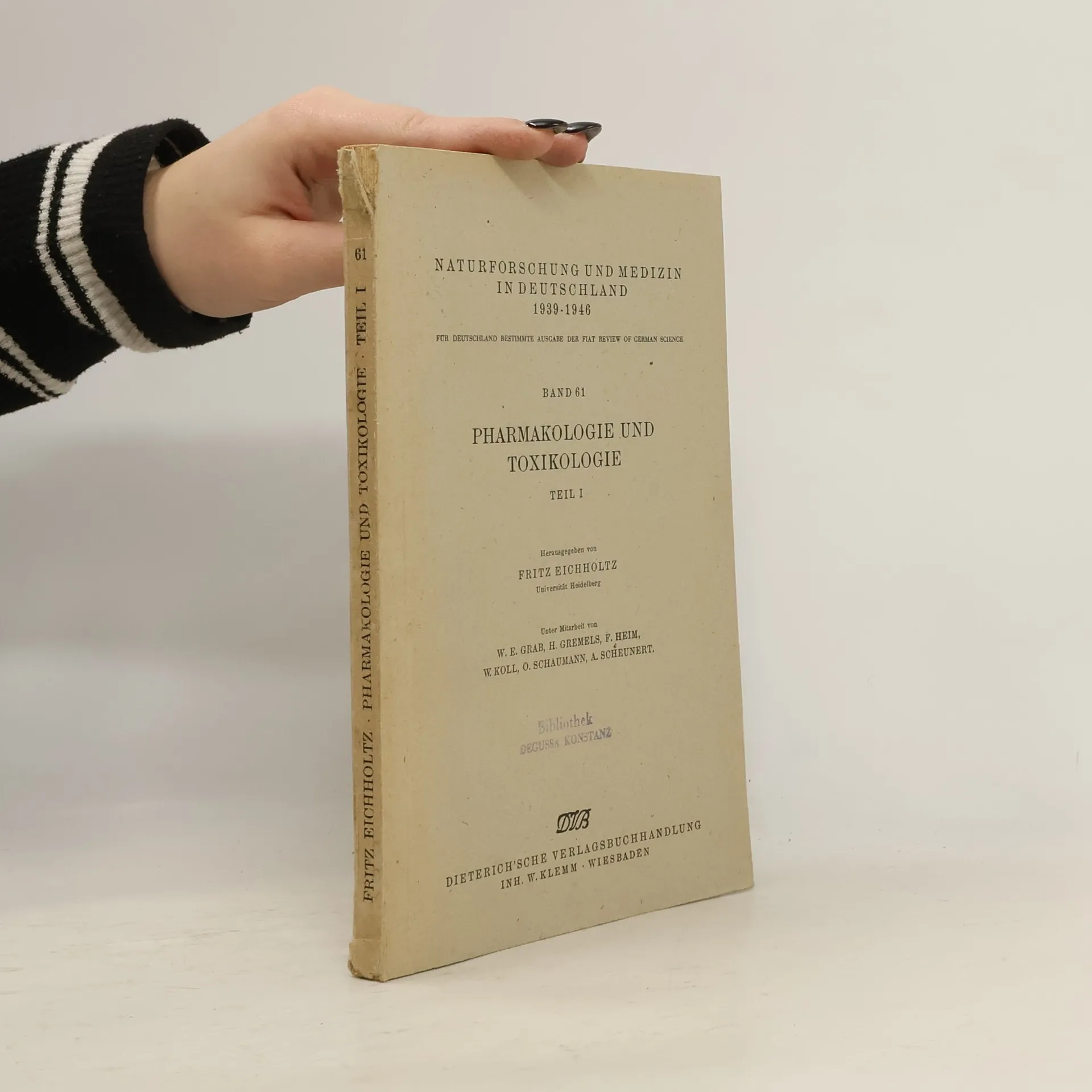 Pharmakologie und Toxikologie .Teil I, Fritz Eichholz