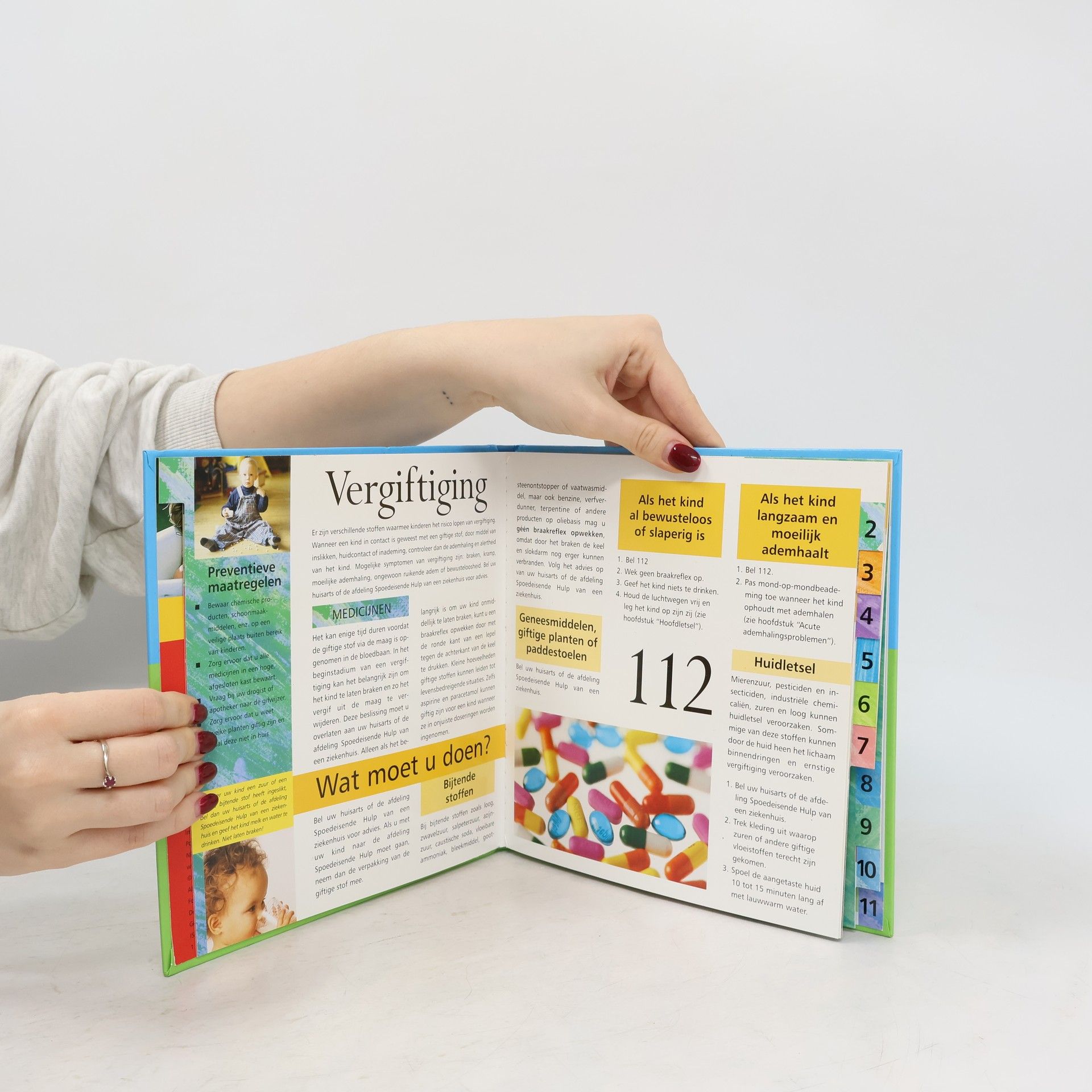 Beknopte handleiding voor eerste hulpverlening bij grote en kleine noodgevallen met kinderen.