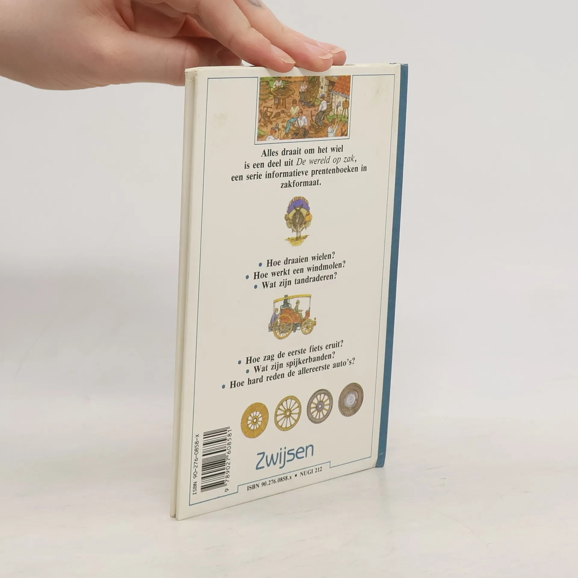 Allerlei wetenswaardigheden over het gebruik van het wiel: vanaf het eerste houten wiel tot en met het wiel, dat men later in de ruimte denkt te gaan gebruiken. Vanaf ca. 10 jaar.
