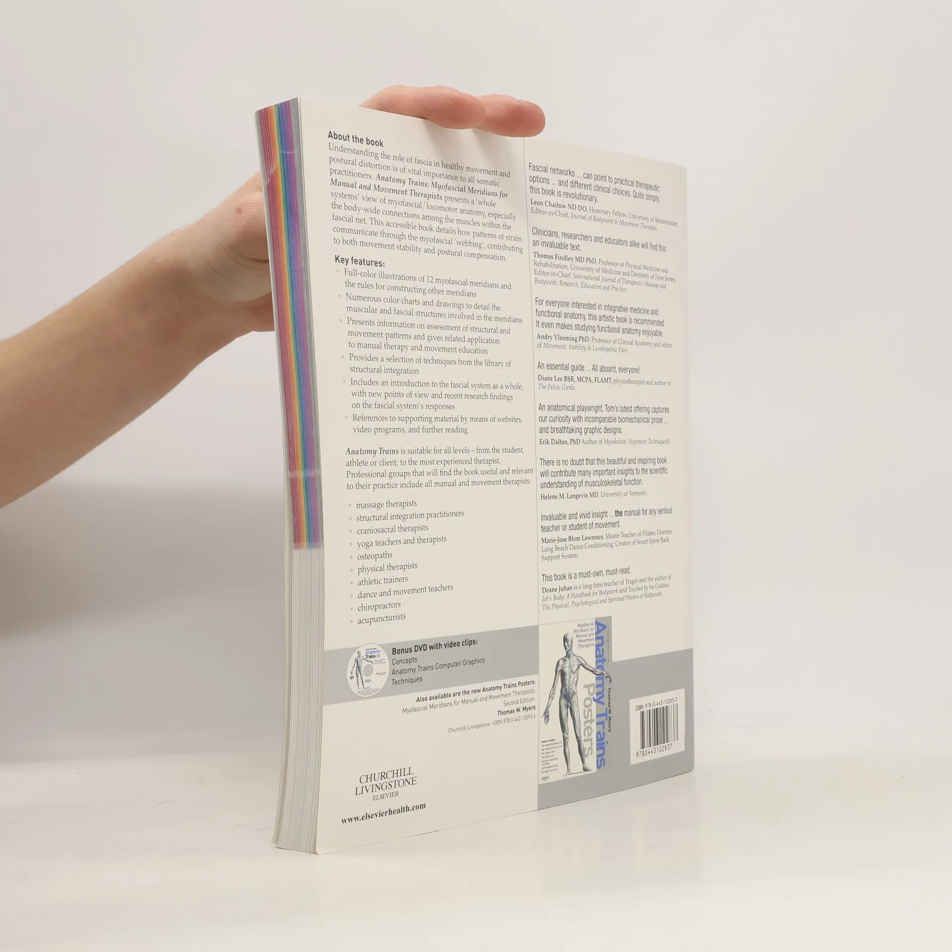 An accessible and comprehensive approach to the anatomy and function of the fascial system in the body combined with a holistic overview of myofascial therapy. Many different therapists now use myofascial techniques to influence postural change and pain relief. This book demonstrates exactly how the muscles connect within the connect tissue to affect posture, compensatory strain, and pain patterns. The aim is to present scientifically sound and often complicated material in a way which can be easily learned, understood, and applied by those who do not necessarily have a scientific background. ANATOMY TRAINS is written and presented in a style that allows this new information on the myofascial system to be easily absorbed by a wide range of readers: from the student, athlete, or client to the most experienced therapist.