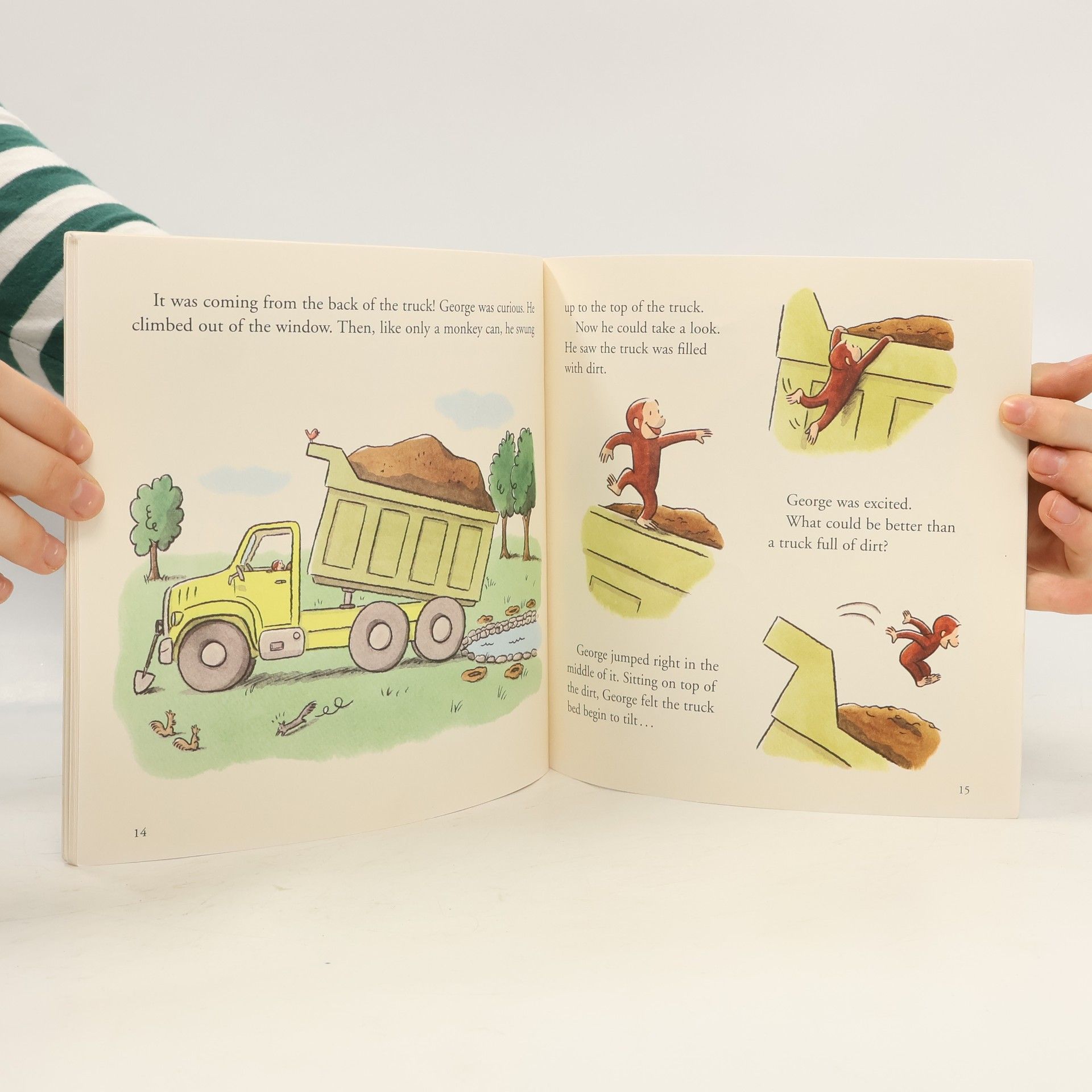 Curious George gets into trouble when he boards a dump truck and spills a load of dirt in a pond but redeems himself when the dirt creates an island for the pond's ducks.