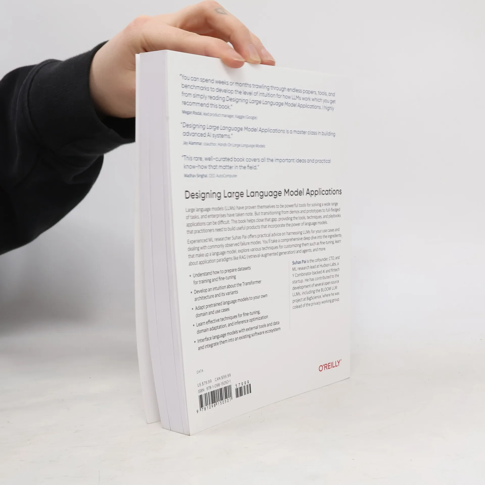 Large language models (LLMs) have proven themselves to be powerful tools for solving a wide range of tasks, and enterprises have taken note. But transitioning from demos and prototypes to full-fledged applications can be difficult. This book helps close that gap, providing the tools, techniques, and playbooks that practitioners need to build useful products that incorporate the power of language models.Experienced ML researcher Suhas Pai offers practical advice on harnessing LLMs for your use cases and dealing with commonly observed failure modes. You’ll take a comprehensive deep dive into the ingredients that make up a language model, explore various techniques for customizing them such as fine-tuning, learn about application paradigms like RAG (retrieval-augmented generation) and agents, and more.Understand how to prepare datasets for training and fine-tuningDevelop an intuition about the Transformer architecture and its variantsAdapt pretrained language models to your own domain and use casesLearn effective techniques for fine-tuning, domain adaptation, and inference optimizationInterface language models with external tools and data and integrate them into an existing software ecosystem