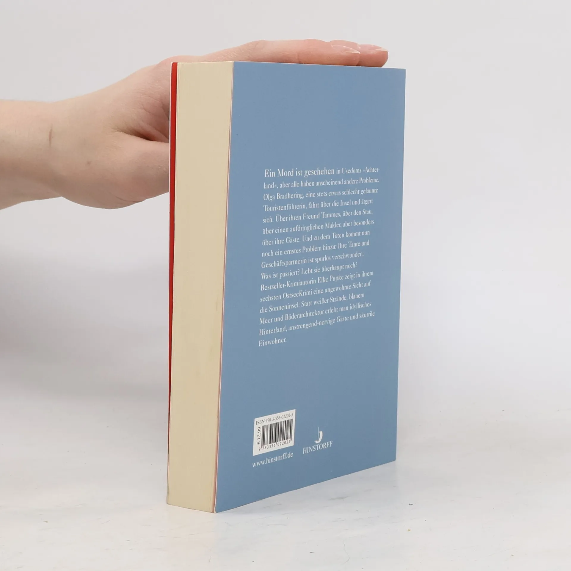 Ein Mord ist geschehen in Usedoms „Achterland“, aber alle haben scheinbar andere Probleme. Olga Bradhering, eine stets etwas schlecht gelaunte Gästeführerin, die Hunde deutlich mehr mag als Menschen, fährt über die Insel und ärgert sich. Über ihren Freund Tammes, über den Stau, über einen aufdringlichen Makler, aber besonders über ihre Gäste. Und ein ernstes Problem kommt nun hinzu: Ihre Tante und Geschäftspartnerin ist spurlos verschwunden. Was ist passiert? Lebt sie überhaupt noch? Auch sie hatte sich durch ihr Verhalten nicht nur Freunde geschaffen; so gibt es einige Verdächtige, denen die Frau vielleicht im Weg war. Bestseller-Krimiautorin Elke Pupke zeigt in ihrem sechsten OstseeKrimi eine ungewohnte Sicht auf die „Sonneninsel“: idyllisches Hinterland, anstrengend-nervige Gäste und skurrile Einwohner statt weißer Strände, blauem Meer und schöner Bäderarchitektur.