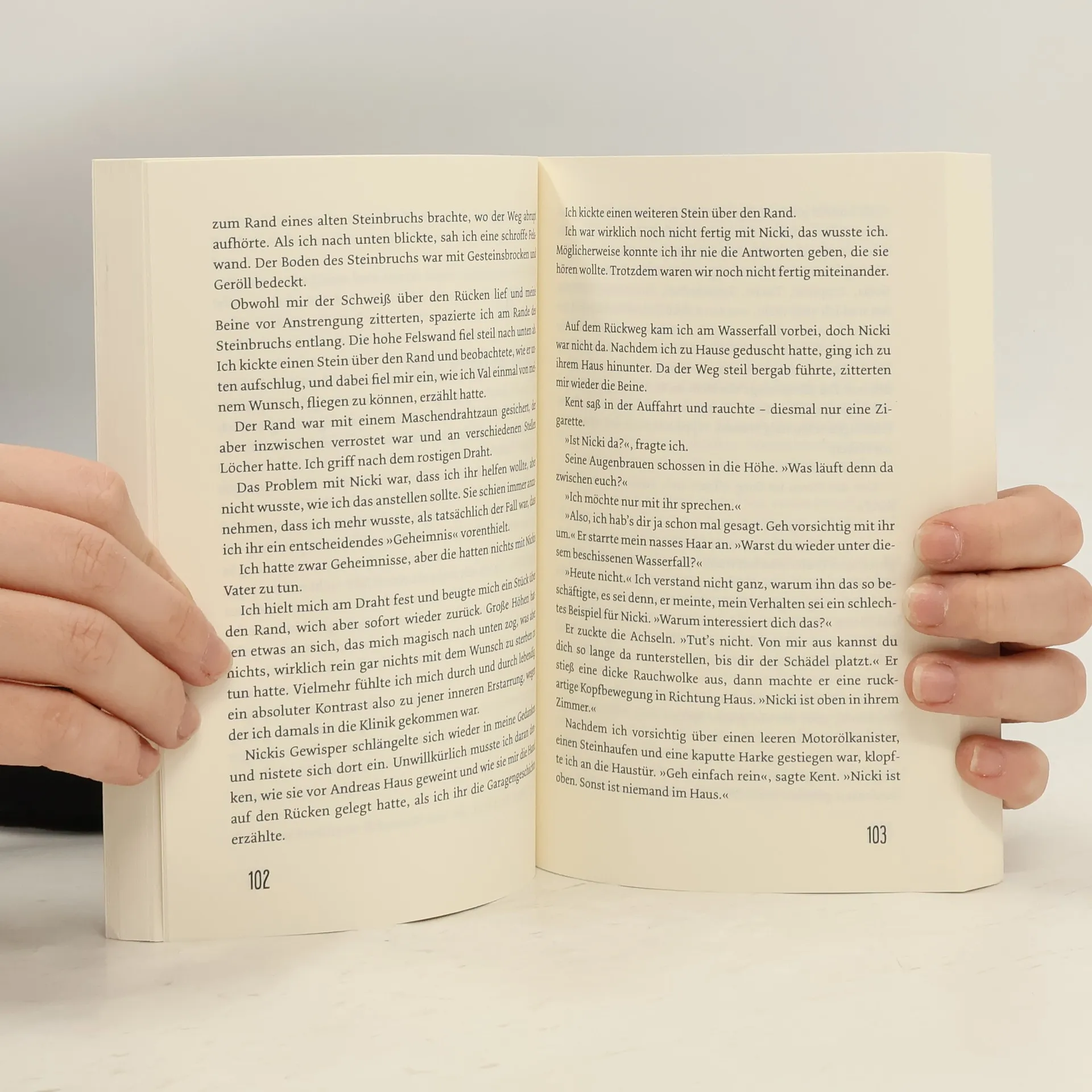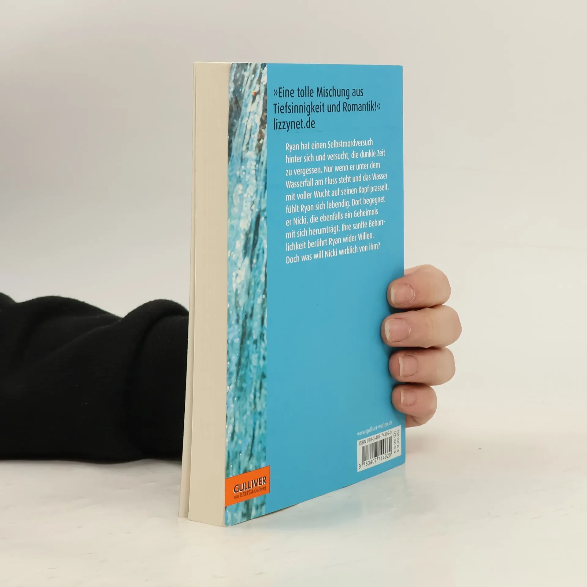 Ein bewegender Roman über Zeiten des Überlebens und das Wagnis des Lebens. Eindringlich, überraschend und voll verschlungener Energien. Ryan hat einen Selbstmordversuch hinter sich und versucht, die dunkle Zeit zu vergessen, der er entkommen ist. Das ist allerdings nicht leicht: Seine Eltern würden ihn am liebsten rund um die Uhr kontrollieren und in der Schule gilt er seitdem als Freak. Nur wenn Ryan unter dem Wasserfall am Fluss steht und das Wasser mit voller Wucht auf seinen Kopf prasselt, fühlt er sich lebendig. Dort begegnet er Nicki, die ebenfalls ein Geheimnis mit sich herumträgt. Die sanfte Beharrlichkeit, mit der sie sich für ihn interessiert, berührt Ryan wider Willen. Doch was will Nicki wirklich von ihm?