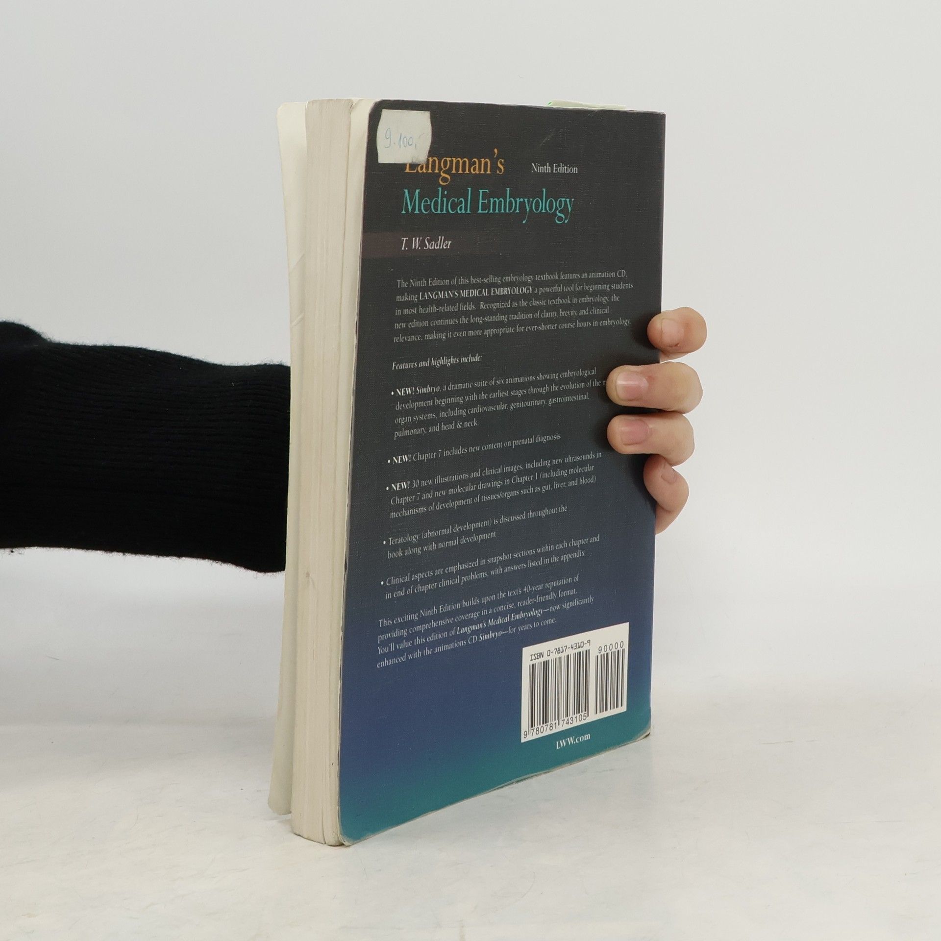 %F%irst published in 1963, this comprehensive text on embryology has long been respected for its scientific authority, pedagogy, and clinical relevance to medical education. Known for its outstanding illustrations and clear and concise writing, the text covers almost all aspects of embryology that would be of interest to medical students and their instructors. The Ninth Edition follows the organization of previous editions, first structured by chronology and then by system. New to this edition are 30 additional illustrations and clinical images, as well as a chapter on prenatal diagnosis and birth defects. Also included is Simbryo, an electronic supplement consisting of Flash animation showing the evolution of early embryonic development.