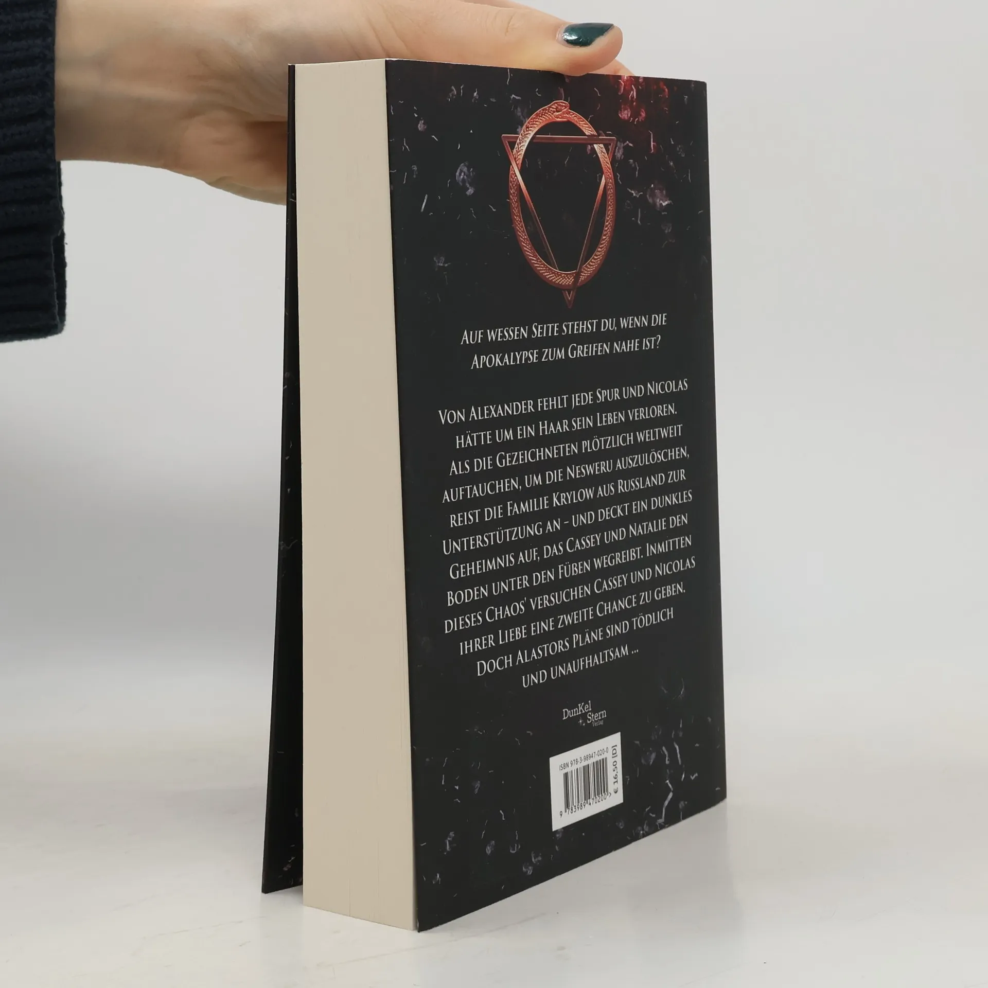 Auf wessen Seite stehst du, wenn die Apokalypse zum Greifen nahe ist? Von Alexander fehlt jede Spur und Nicolas hätte um ein Haar sein Leben verloren. Als die Gezeichneten plötzlich weltweit auftauchen, um die Nesweru auszulöschen, reist die Familie Krylow aus Russland zur Unterstützung an – und deckt ein dunkles Geheimnis auf, das Cassey und Natalie den Boden unter den Füßen wegreißt. Inmitten dieses Chaos' versuchen Cassey und Nicolas ihrer Liebe eine zweite Chance zu geben. Doch Alastors Pläne sind tödlich und unaufhaltsam ...