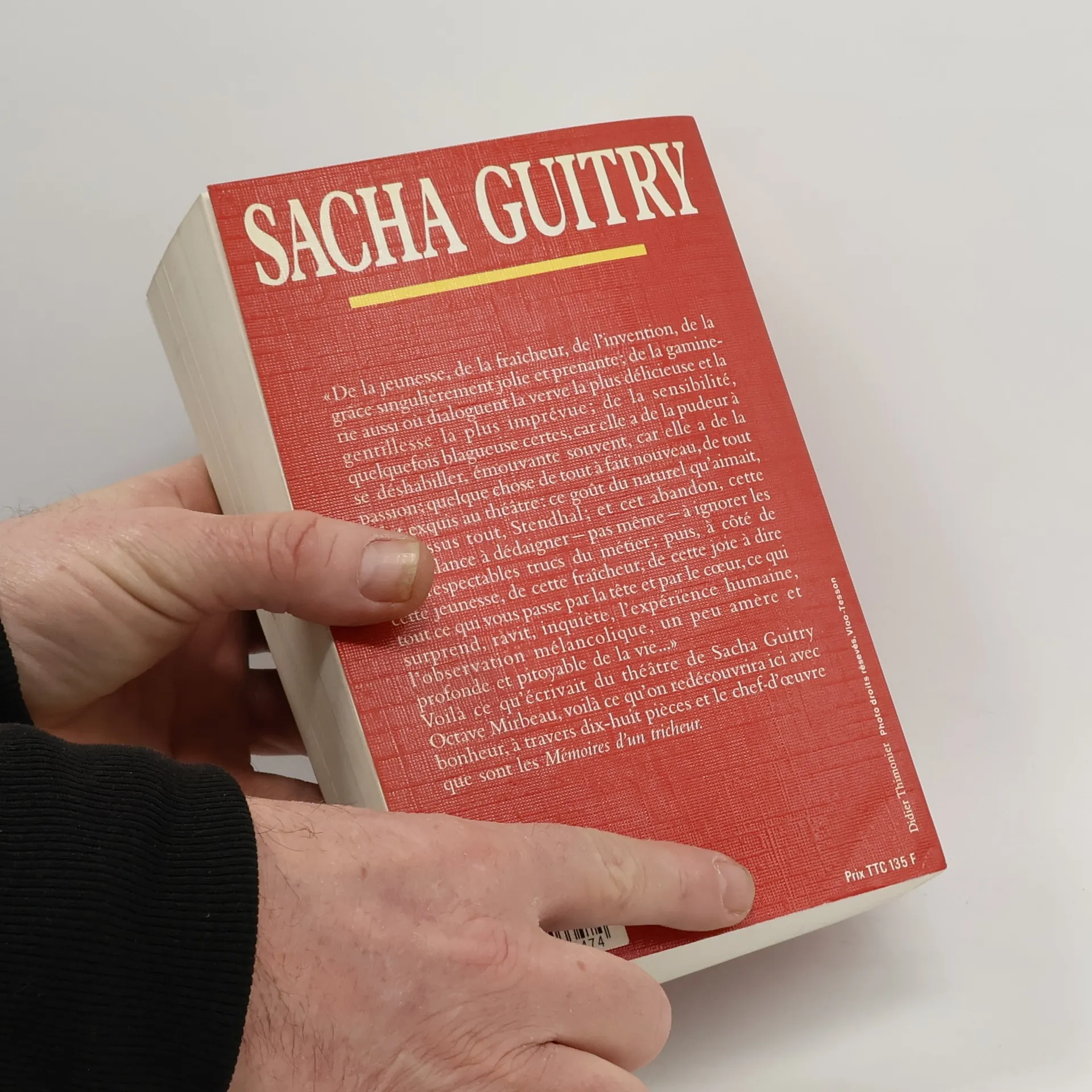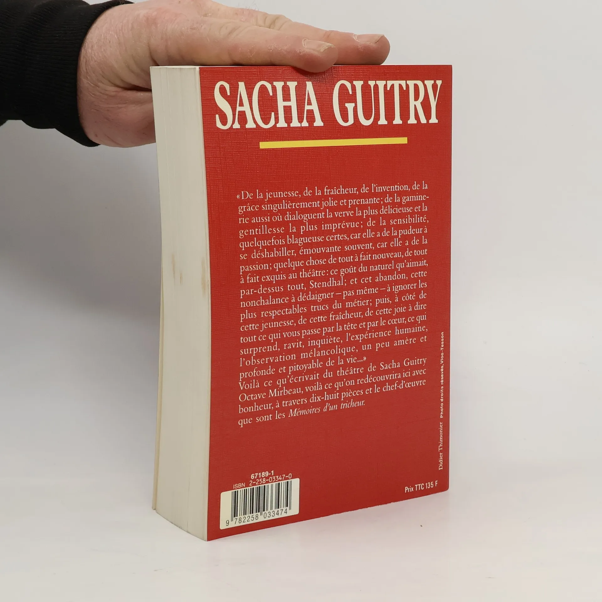 " De la jeunesse, de la fraîcheur, de l'invention, de la grâce singulièrement jolie et prenante ; de la gaminerie aussi où dialoguent la verve la plus délicieuse et la gentillesse la plus imprévue ; de la sensibilité, quelquefois blagueuse certes, car elle a de la pudeur à se déshabiller, émouvante souvent, car elle a de la passion ; quelque chose de tout à fait nouveau, de tout à fait exquis au théâtre : ce goût du naturel qu'aimait, par-dessus tout, Stendhal ; et cet abandon, cette nonchalance à dédaigner - pas même - à ignorer les plus respectables trucs du métier ; puis, à côté de cette jeunesse, de cette fraîcheur, de cette joie à dire tout ce qui vous passe par la tête et par le cœur, ce qui surprend, ravit, inquiète, l'expérience humaine, l'observation mélancolique, un peu amère et profonde et pitoyable de la vie... " Voilà ce qu'écrivait du théâtre de Sacha Guitry Octave Mirbeau, voilà ce qu'on redécouvrira ici avec bonheur, à travers dix-huit pièces et le chef-d'œuvre que sont les Mémoires d'un tricheur.