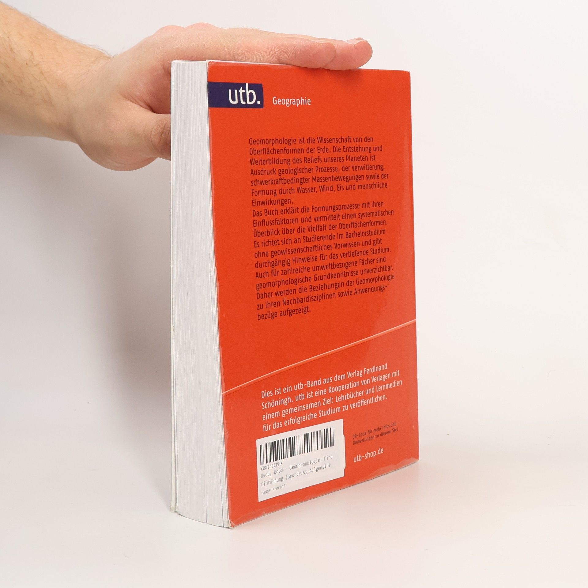 Geomorphologie ist die Wissenschaft von den Oberflächenformen der Erde. Die Entstehung und Weiterbildung des Reliefs unseres Planeten ist Ausdruck geologischer Prozesse, der Verwitterung, schwerkraftbedingter Massenbewegungen sowie der Formung durch Wasser, Wind, Eis und menschliche Einwirkungen. Das Buch erklärt die Formungsprozesse mit ihren Einflussfaktoren und vermittelt einen systematischen Überblick über die Vielfalt der Oberflächenformen. Es richtet sich an Studierende im Bachelorstudium ohne geowissenschaftliches Vorwissen und gibt durchgängig Hinweise für das vertiefende Studium. Auch für zahlreiche umweltbezogene Fächer sind geomorphologische Grundkenntnisse unverzichtbar. Daher werden die Beziehungen der Geomorphologie zu ihren Nachbardisziplinen sowie Anwendungsbezüge aufgezeigt.