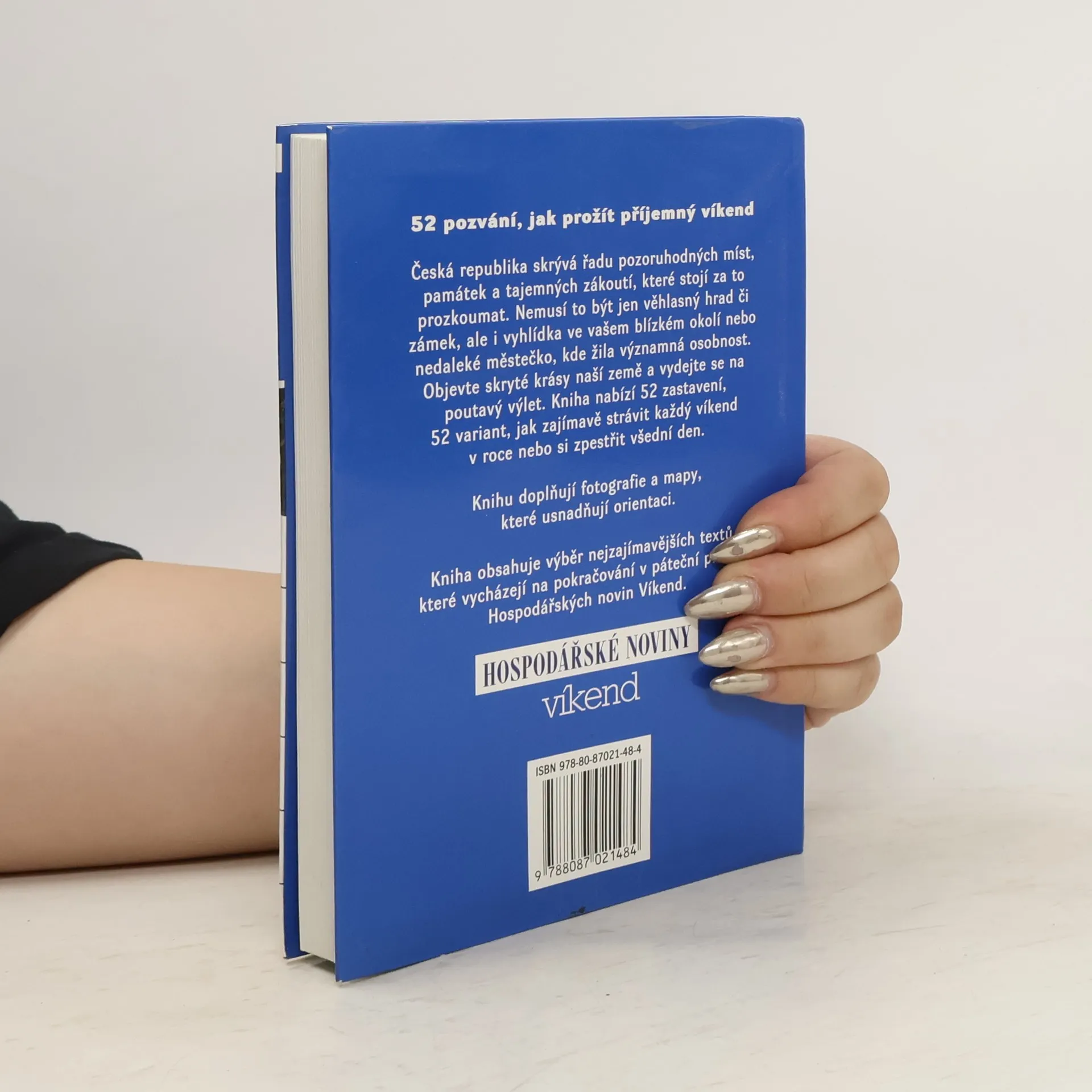 52 pozvání, jak prožít příjemný víkend Česká republika skrývá řadu pozoruhodných míst, památek a tajemných zákoutí, které stojí za to prozkoumat. Nemusí to být jen věhlasný hrad či zámek, ale i vyhlídka ve vašem blízkém okolí nebo nedaleké městečko, kde žila významná osobnost. Objevte skryté krásy naší země a vydejte se na poutavý výlet. Kniha nabízí 52 zastavení, 52 variant, jak zajímavě strávit každý víkend v roce nebo si zpestřit všední den. Knihu doplňují fotografie a mapy, které usnadňují orientaci. Kniha obsahuje výběr nejzajímavějších textů, které vycházejí na pokračování v páteční příloze Hospodářských novin Víkend.