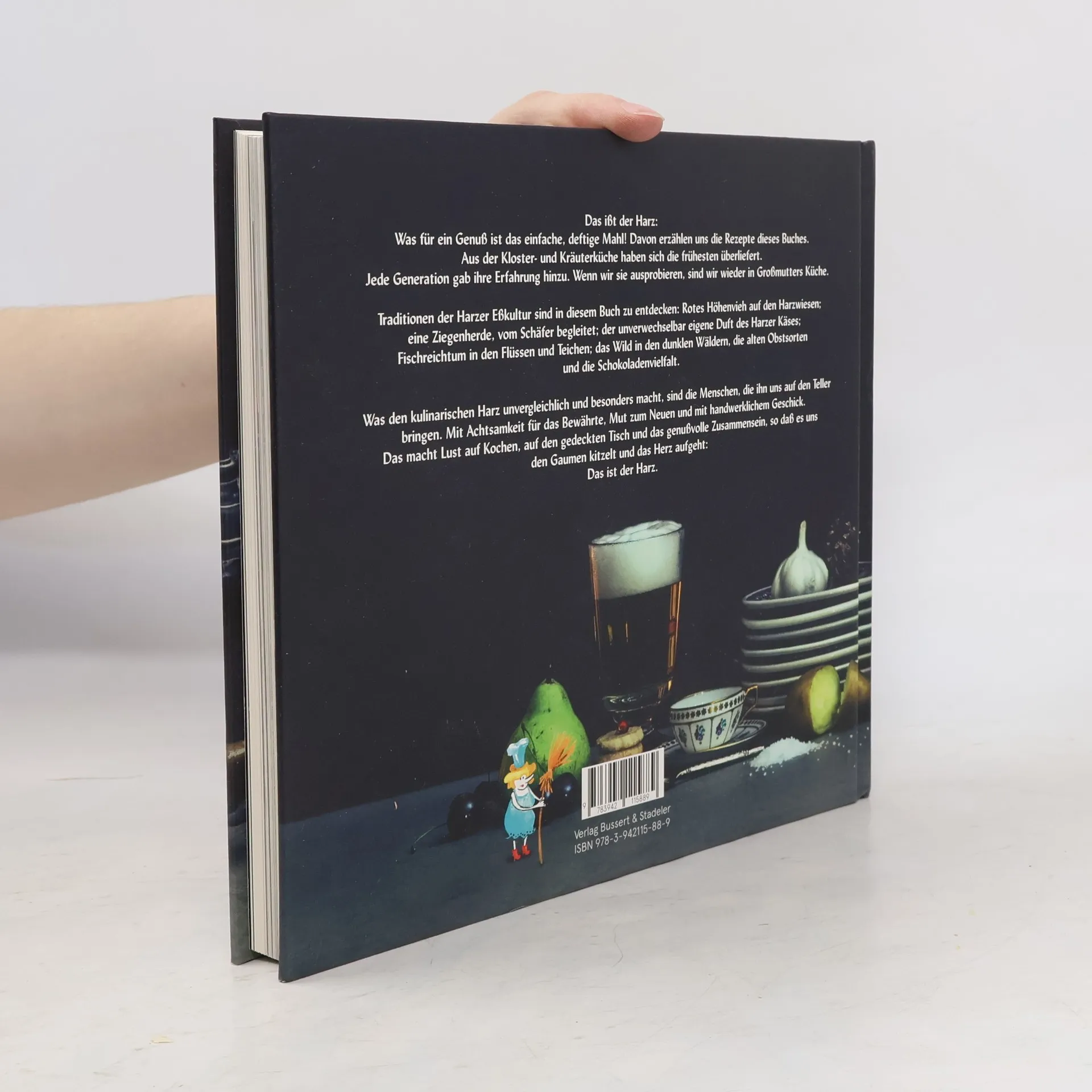 Das ißt der Harz: Was für ein Genuß ist das einfache, deftige Mahl! Davon erzählen uns die Rezepte dieses Buches. Aus der Kloster- und Kräuterküche haben sich die frühesten überliefert. Jede Generation gab ihre Erfahrung hinzu. Wenn wir sie ausprobieren, sind wir wieder in Großmutters Küche. Traditionen der Harzer Eßkultur sind in diesem Buch zu entdecken: Rotes Höhenvieh auf den Harzwiesen; eine Ziegenherde, vom Schäfer begleitet; der unverwechselbar eigene Duft des Harzer Käses; der Fischreichtum in den Flüssen und Teichen; das Wild in den dunklen Wäldern, die alten Obstsorten und die Schokoladenvielfalt. Was den kulinarischen Harz unvergleichlich und besonders macht, sind die Menschen, die ihn uns auf den Teller bringen. Mit Achtsamkeit für das Bewährte, Mut zum Neuen und mit handwerklichem Geschick. Das macht Lust auf Kochen, auf den gedeckten Tisch und das genußvolle Zusammensein, so daß es uns den Gaumen kitzelt und das Herz aufgeht: Das ist der Harz.