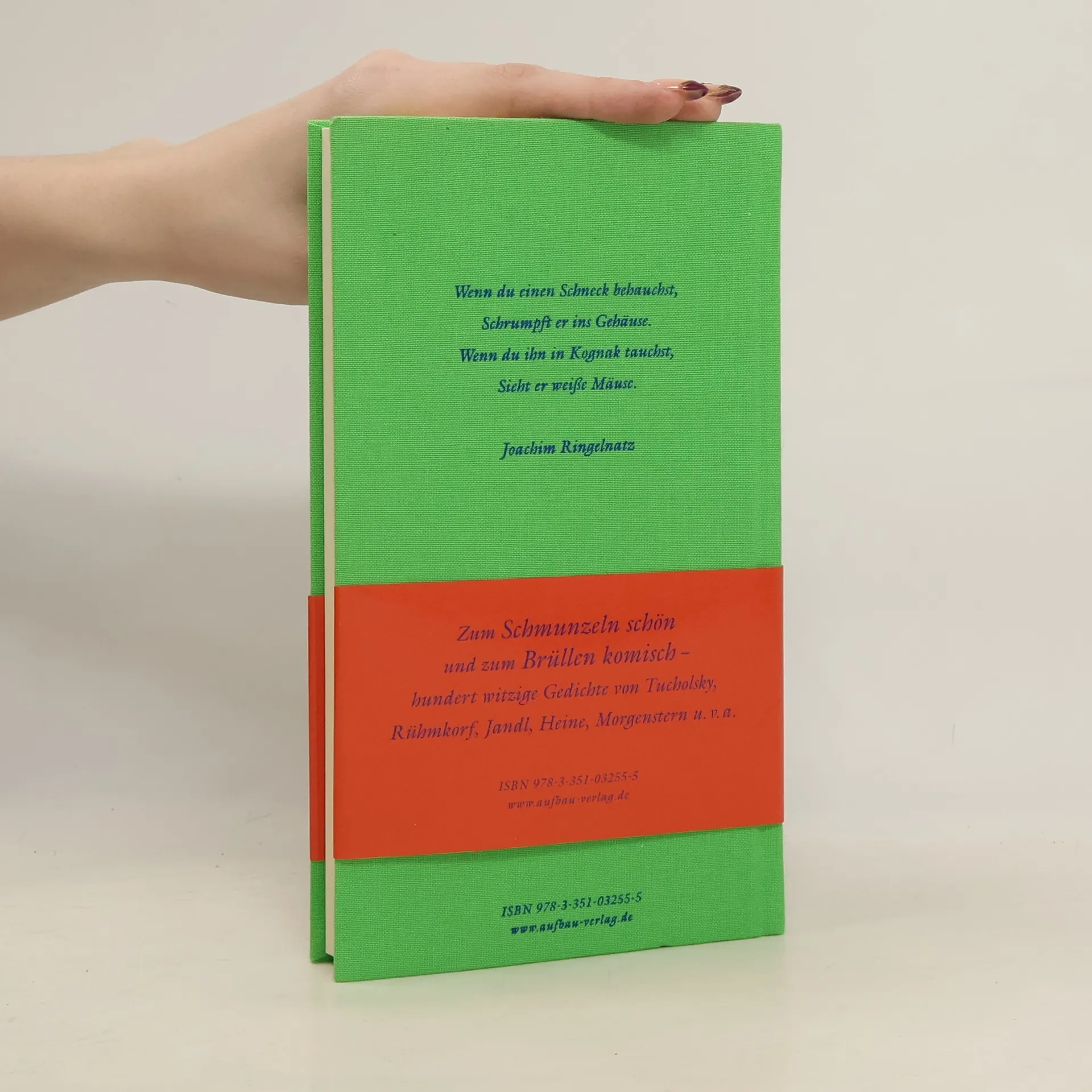 Lyrik zum Lachen Wenn du einen Schneck behauchst, Schrumpft er ins Gehäuse. Wenn du ihn in Kognak tauchst, Sieht er weiße Mäuse. Joachim Ringelnatz Dieser höchst vergnügliche Lyrikband erweitert das Sprachvermögen und trainiert die Bauchmuskulatur. Hundert witzige Gedichte - zum Schmunzeln schön und zum Brüllen komisch - von Tucholsky, Rühmkorf, Ringelnatz, Kästner, Jandl, Heine, Morgenstern, Fried, Hesse, Rilke, Busch, Gernhardt, Waechter u. v. a.