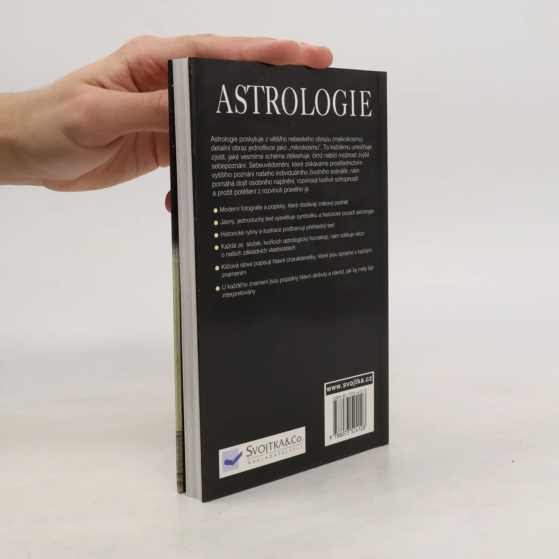 Moderní fotografie a popisky, které dodávají zrakový podnět. Jasný, jednoduchý text vysvětluje symboliku a historické pozadí astrologie. Historické rytiny a ilustrace podbarvují přehledný text. Každá ze složek, tvořících astrologický hosroskop, nám sděluje něco o našich základních vlastnostech. Klíčová slova popisují hlavní charakteristiky, které jsou spojené s každým znamením. U každého znamení jsou popsány hlavní atributy a návod, jak by měly být interpretovány.