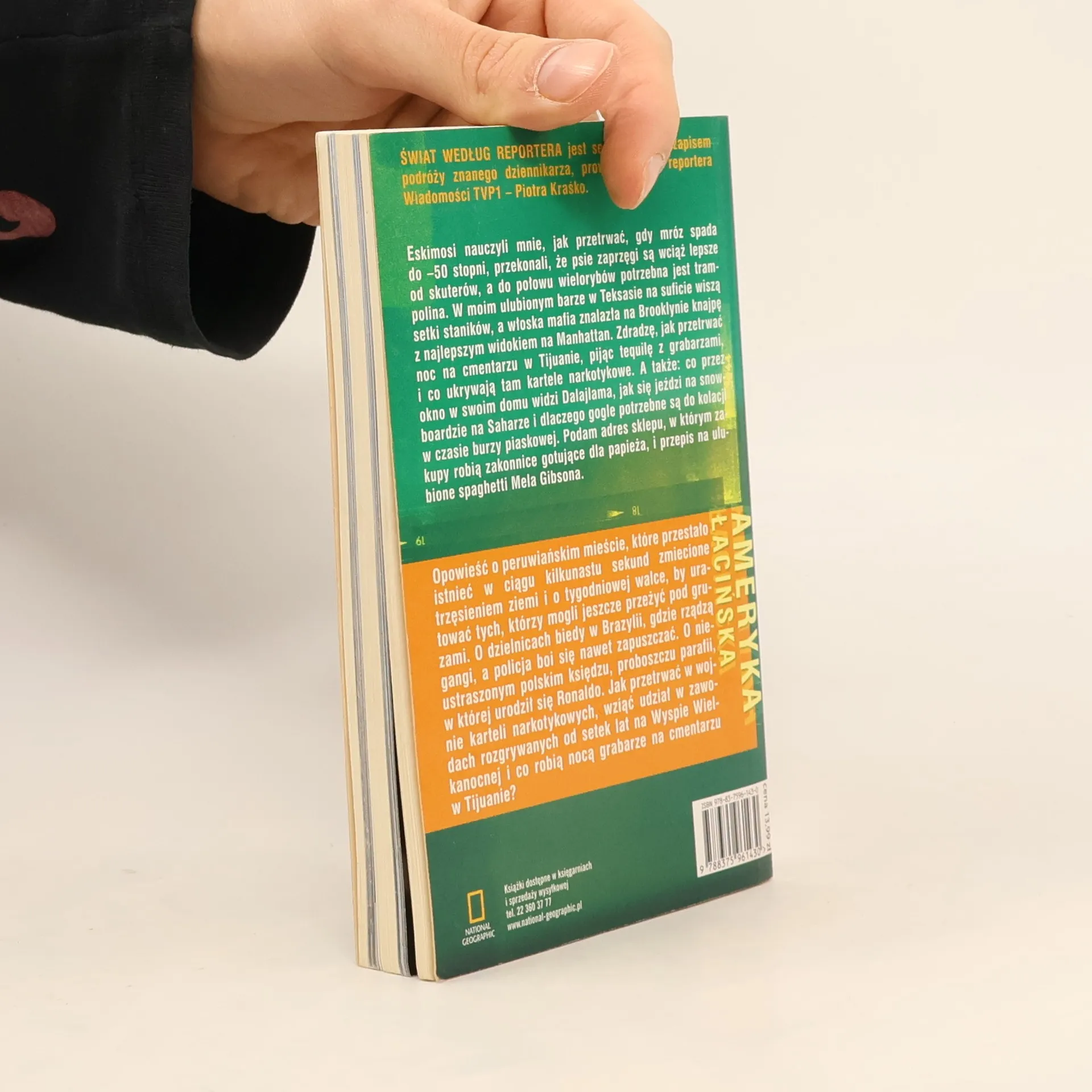 Świat według reportera jest serią książek z zapisem podróży znanego dziennikarza, prowadzącego i reportera Wiadomości TVP1- Piotra Kraśko.Eskimosi nauczyli mnie, jak przetrwać, gdy mróz spada do -50 stopni, przekonali, że psie zaprzęgi są wciąż lepsze od skuterów, a do połowu wielorybów potrzebna jest trampolina. W moim ulubionym barze w Teksasie na suficie wiszą setki staników, a włoska mafia znalazła na Brooklynie knajpę z najlepszym widokiem na Manhattan. Zdradzę, jak przetrwać noc na cmentarzu w Tijuanie, pijąc tequilę z grabarzami, i co ukrywają tam kartele narkotykowe. A także: co przez okno w swoim domu widzi Dalajlama, jak się jeździ na snowboardzie na Saharze i dlaczego gogle potrzebne są do kolacji w czasie burzy piaskowej. Podam adres sklepu, w którym zakupy robią zakonnice gotujące dla papieża i przepis na ulubione spaghetti Mela Gibsona.