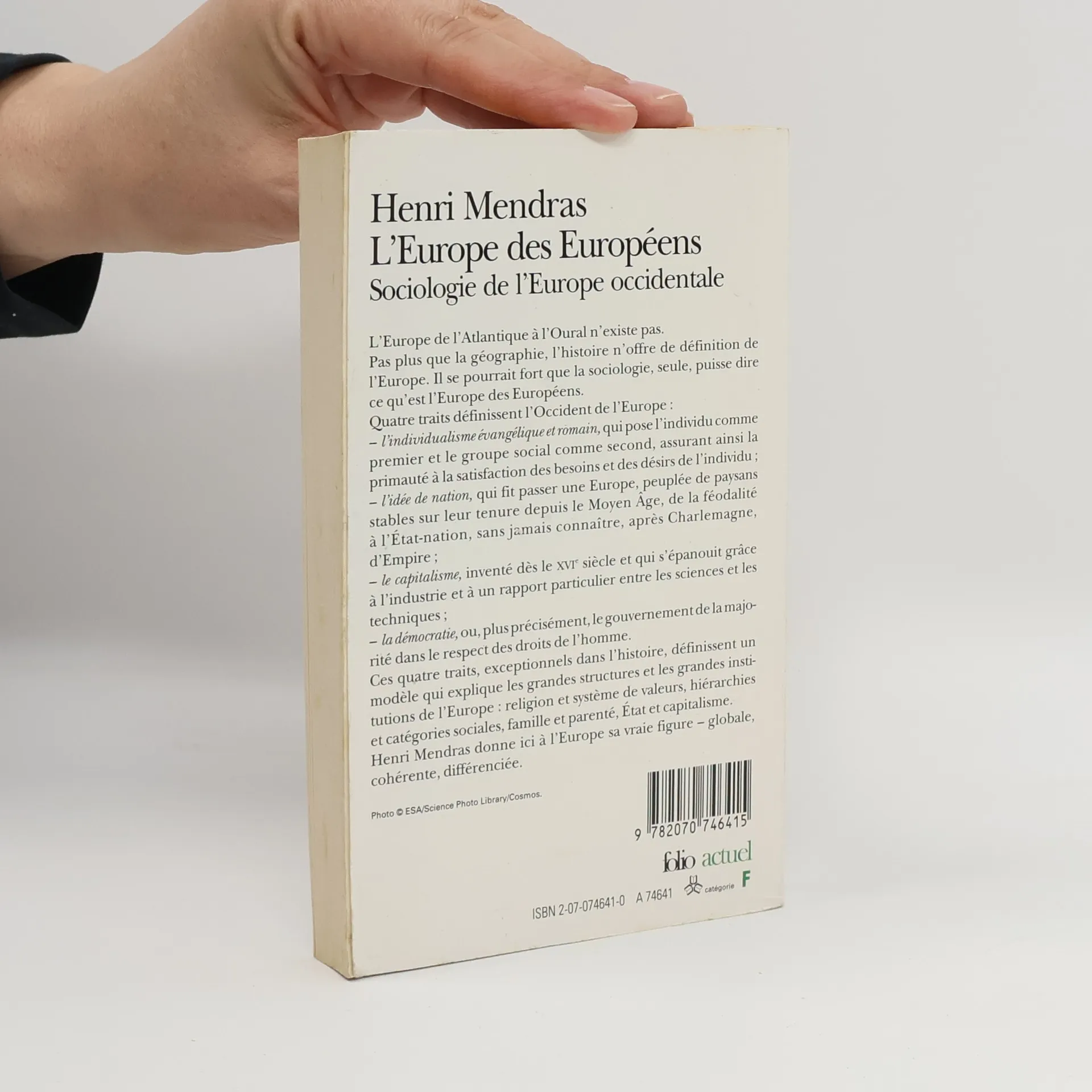 L'Europe de l'Atlantique à l'Oural n'existe pas.Pas plus que la géographie, l'histoire n'offre de définition de l'Europe. Il se pourrait fort que la sociologie, seule, puisse dire ce qu'est l'Europe des Européens.Quatre traits définissent l'Occident de l'Europe : -l'individualisme évangélique et romain, qui pose l'individu comme premier et le groupe social comme second, assurant ainsi la primauté à la satisfaction des besoins et des désirs de l'individu ; -l'idée de nation, qui fit passer une Europe, peuplée de paysans stables sur leur tenure depuis le Moyen Âge, de la féodalité à l'État-nation, sans jamais connaître, après Charlemagne, d'Empire ;-le capitalisme, inventé dès le XVIᵉ siècle et qui s'épanouit grâce à l'industrie et à un rapport particulier entre les sciences et les techniques ; -la démocratie, ou, plus précisément, le gouvernement de la majorité dans le respect des droits de l'homme. Ces quatre traits, exceptionnels dans l'histoire, définissent un modèle qui explique les grandes structures et les grandes institutions de l'Europe : religion et système de valeurs, hiérarchies et catégories sociales, famille et parenté, État et capitalisme.Henri Mendras donne ici à l'Europe sa vraie figure - globale, cohérente, différenciée.