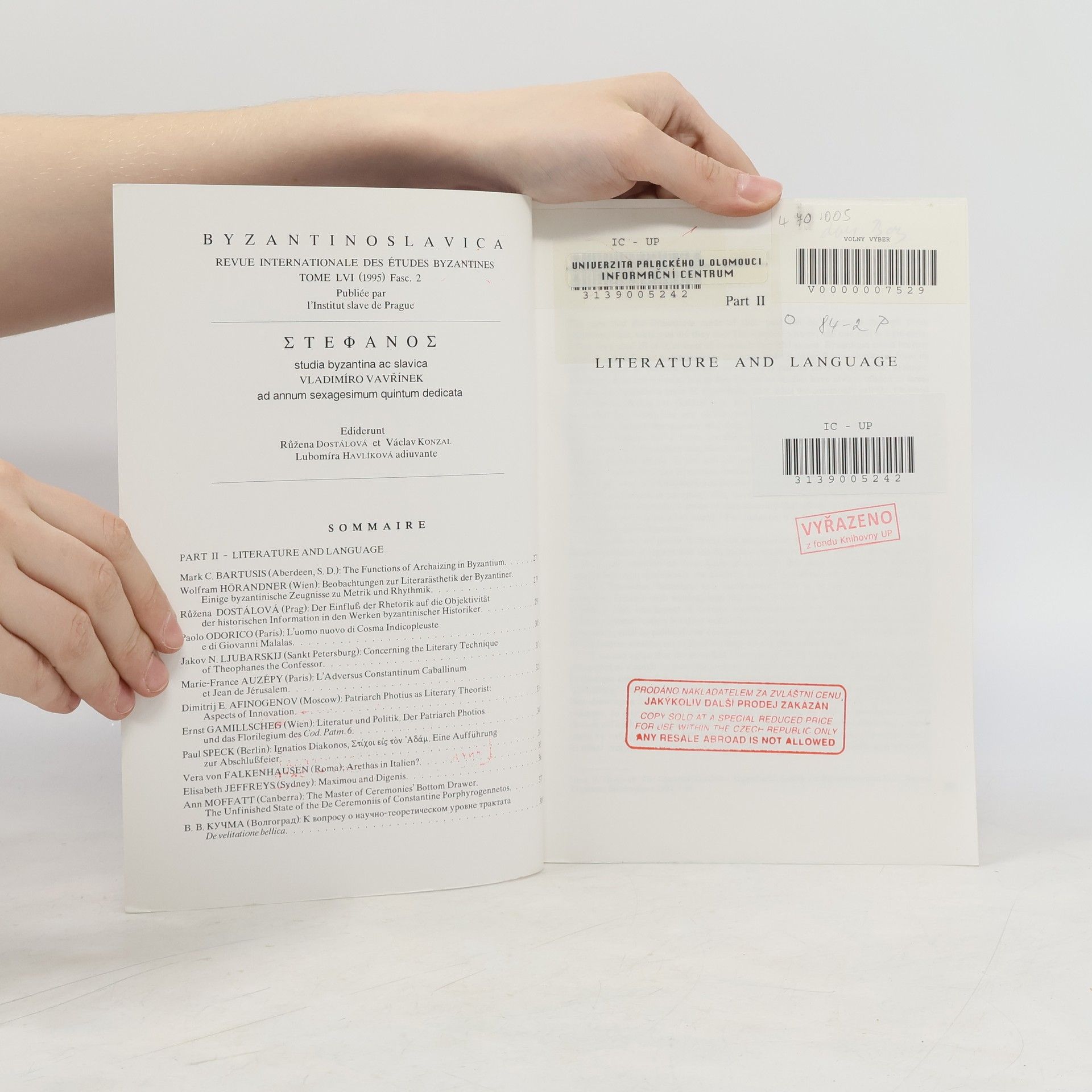 Byzantinoslavica LVI 2, Vladimíro Vavřínek