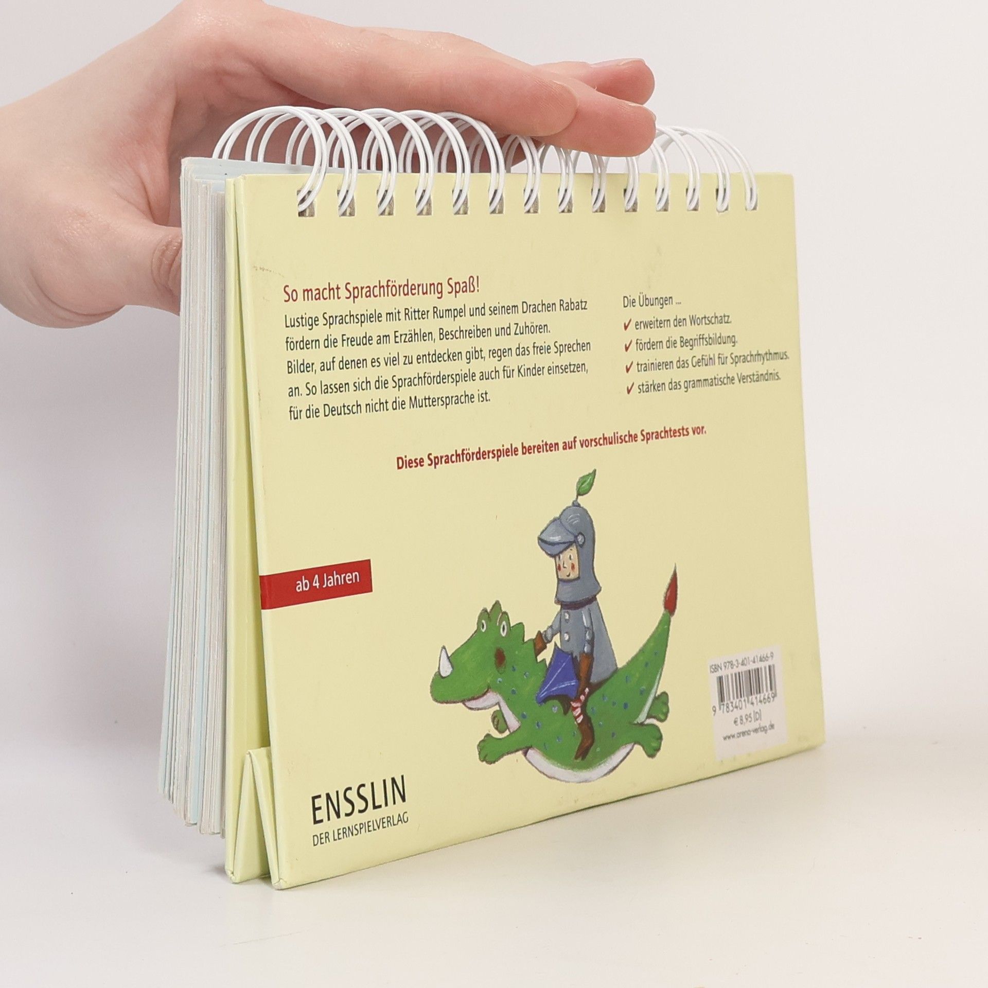 Lustige Sprachspiele mit Ritter Rumpel und seinem Drachen Rabatz fördern die Freude von Kindern am Erzählen, Beschreiben und Zuhören. Bilder, auf denen es viel zu entdecken gibt, regen das freie Sprechen an. Sie machen den Aufsteller zum geeigneten Fördermittel, auch für Kinder, für die Deutsch nicht die Muttersprache ist. Die Übungen & cdot; erweitern den Wortschatz & cdot; fördern die Begriffsbildung & cdot; trainieren das Gefühl für Sprachrhythmus und & cdot; stärken das grammatische Verständnis.