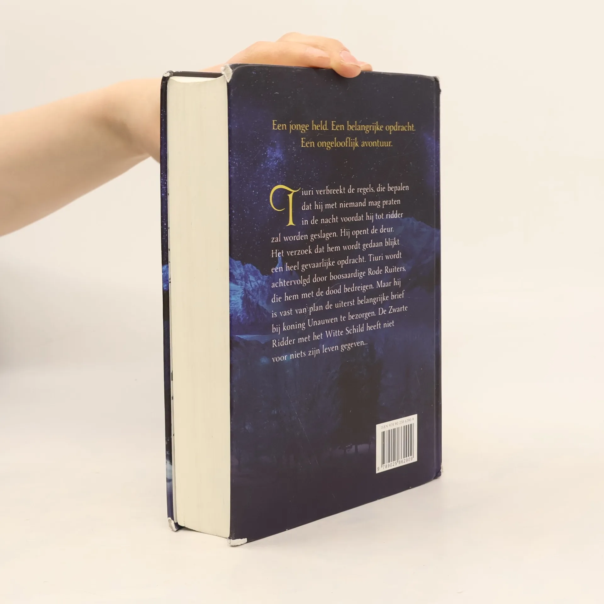Een jonge held. Een belangrijke opdracht. Een ongelooflijk avontuur. Tiuri verbreekt de regels, die bepalen dat hij met niemand mag praten in de nacht voordat hij tot ridder zal worden geslagen. Hij opent de deur. Het verzoek dat hem wordt gedaan blijkt een heel gevaarlijke opdracht. Tiuri wordt achtervolgd door boosaardige Rode Ruiters, die hem met de dood bedreigen. Maar hij is vast van plan de uiterst belangrijke brief bij koning Unauwen te bezorgen. De Zwarte Ridder met het Witte Schild heeft niet voor niets zijn leven gegeven…