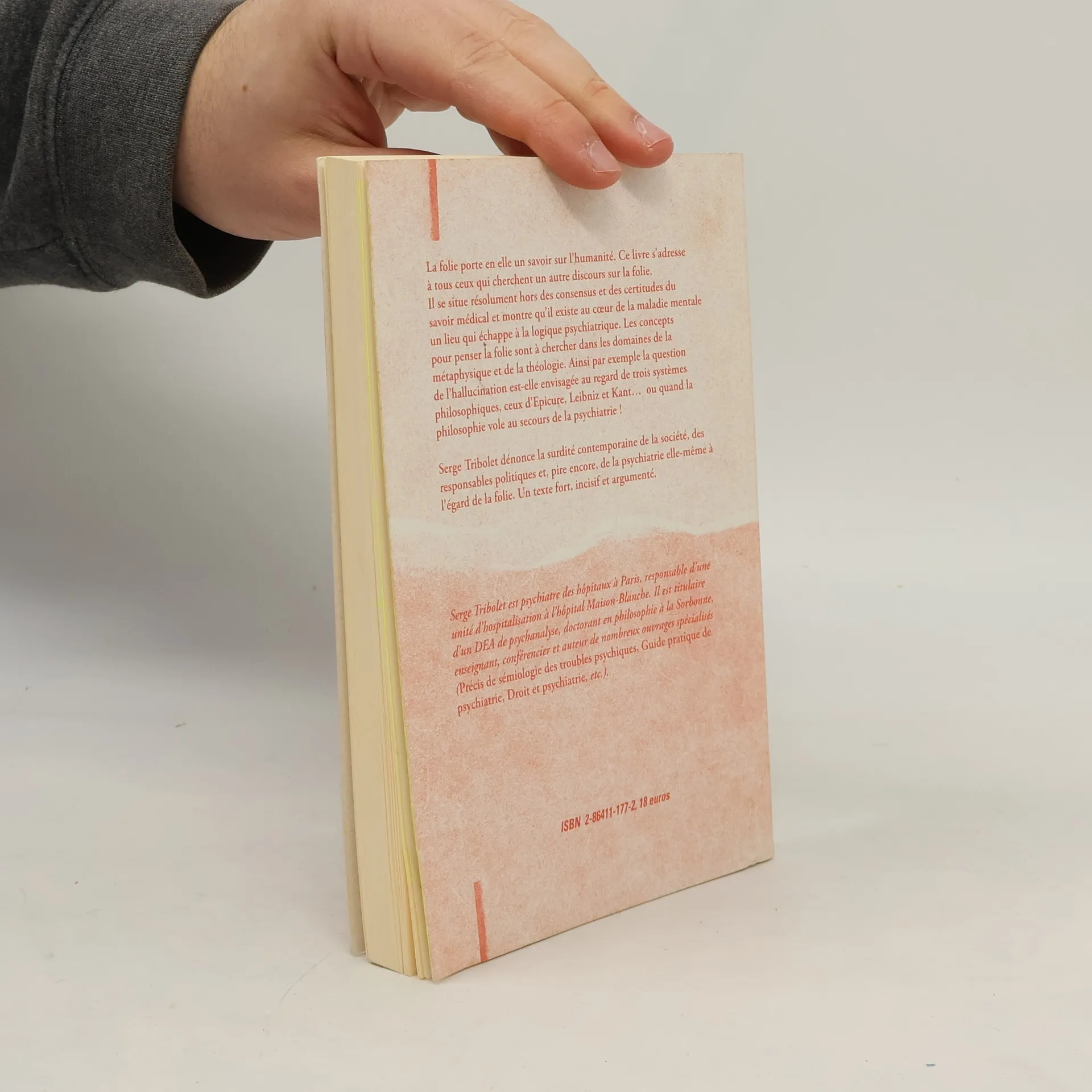 La folie porte en elle un savoir sur l'humanité. Ce livre s'adresse à tous ceux qui cherchent un autre discours sur la folie. Il se situe résolument hors des consensus et des certitudes du savoir médical et montre qu'il existe au cœur de la maladie mentale un lieu qui échappe à la logique psychiatrique. Les concepts pour penser la folie sont à chercher dans les domaines de la métaphysique et de la théologie. Ainsi par exemple la question de l'hallucination est-elle envisagée au regard de trois systèmes philosophiques, ceux d'Epicure, Leibniz et Kant... ou quand la philosophie vole au secours de la psychiatrie ! Serge Tribolet dénonce la surdité contemporaine de la société, des responsables politiques et, pire encore, de la psychiatrie elle-même à l'égard de la folie. Un texte fort, incisif et argumenté.
