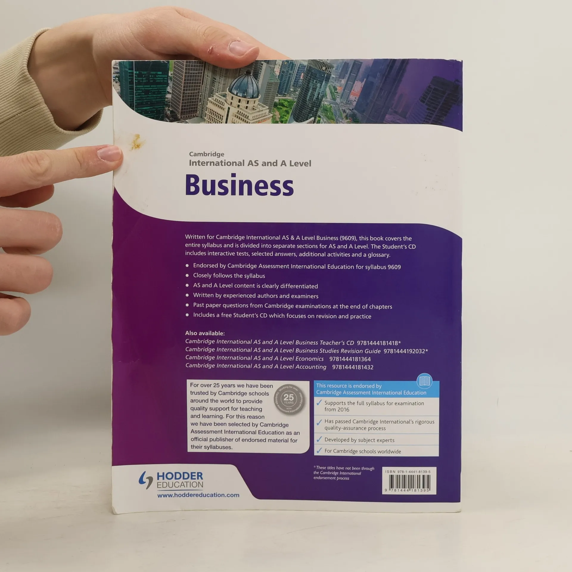 <b>Endorsed by </b><b>Cambridge International Examinations </b><br /><br /><b>Foster a deeper understanding with a wide range of international case studies and exam preparation matched to the key knowledge students need for success.</b><br /><br />This title covers the entire syllabus for Cambridge International Examinations' International AS and A Level Business (9609). It is divided into separate sections for AS and A Level making it ideal for students studying both the AS and the A Level and also those taking the AS examinations at the end of their first year.<br /><br />- Illustrates key concepts using examples from multinationals and businesses that operate around the world<br />- Provides practice throughout the course with carefully selected past paper questions, covering all question types, at the end of each chapter<br />- Using and interpreting data feature emphasises and illustrates the importance of numeracy both in terms of calculations and interpreting numerical data<br />- Free Revision and practice CD includes interactive tests, selected answers, additional activities, and a glossary<br />- Answers to the questions in the Student's Book can be found on the Teacher's CD Rom