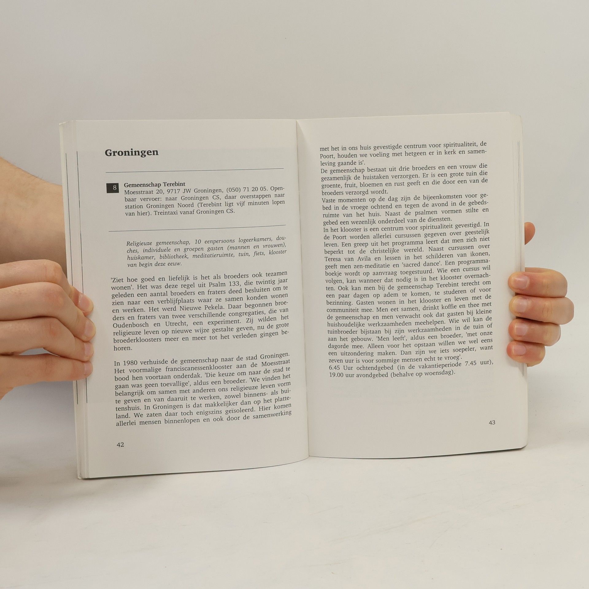 Kloostergids voor Nederland met korte beschrijvingen van de huizen en de voorwaarden voor een kort verblijf als gast.