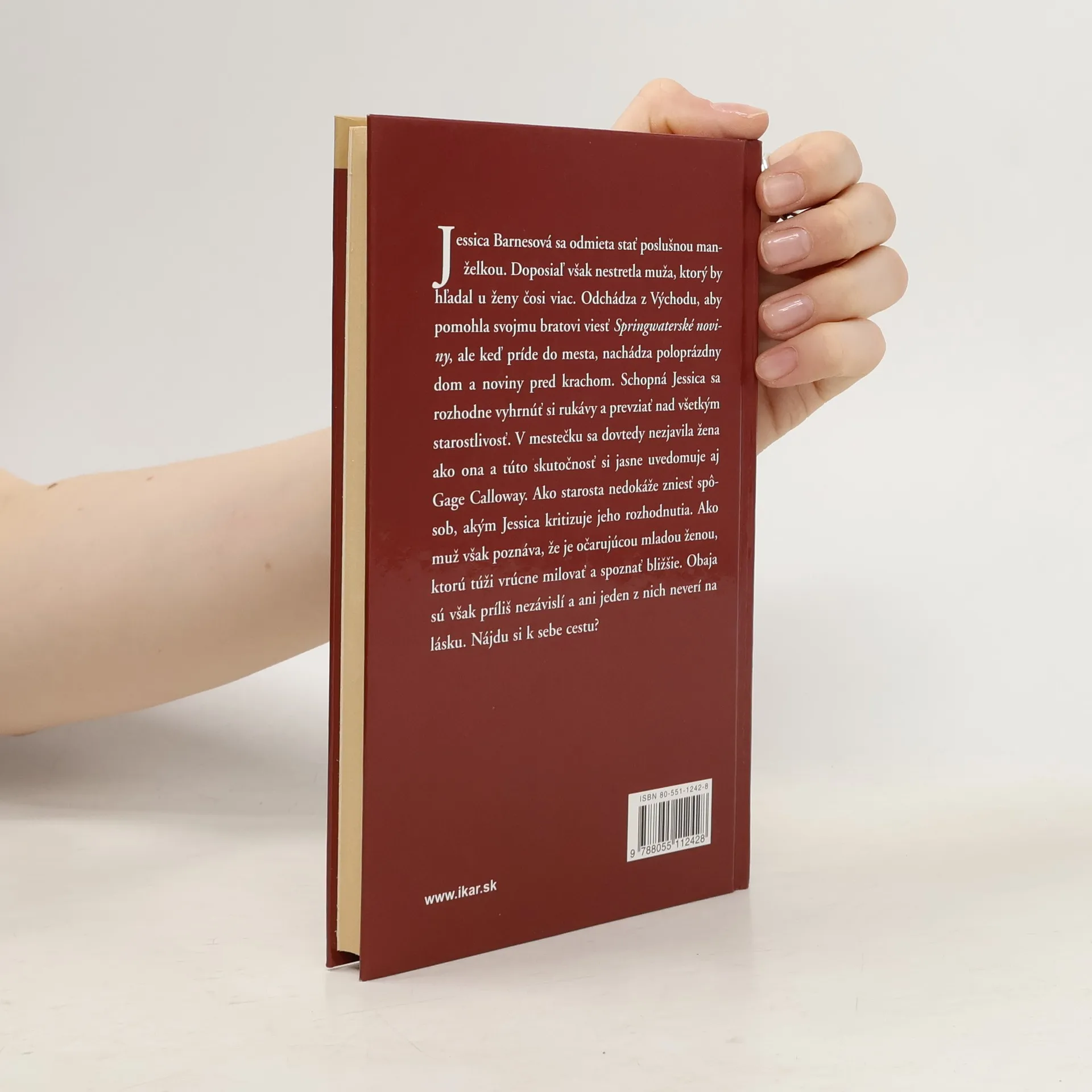 Jessica Barnesová sa odmieta stať poslušnou manželkou a doposiaľ ešte nestretla muža, ktorý by hľadal u ženy čosi viac. Odchádza z Východu, aby pomohla svojmu bratovi viesť Springwaterské noviny, ale keď príde do mesta, nachádza poloprázdny dom a noviny pred krachom. Schopná Jessica sa rozhodne vyhrnúť si rukávy a prevziať nad všetkým starostlivosť. V mestečku sa dovtedy nezjavila žena ako ona a túto skutočnosť si jasne uvedomuje aj Gage Calloway. Ako starosta nedokáže zniesť spôsob, akým Jessica kritizuje jeho rozhodnutia. Ako muž však poznáva, že je očarujúcou mladou ženou, ktorú túži vrúcne milovať a spoznať bližšie. Obaja sú však príliš nezávislí a ani jeden z nich neverí na lásku. Nájdu si k sebe cestu?