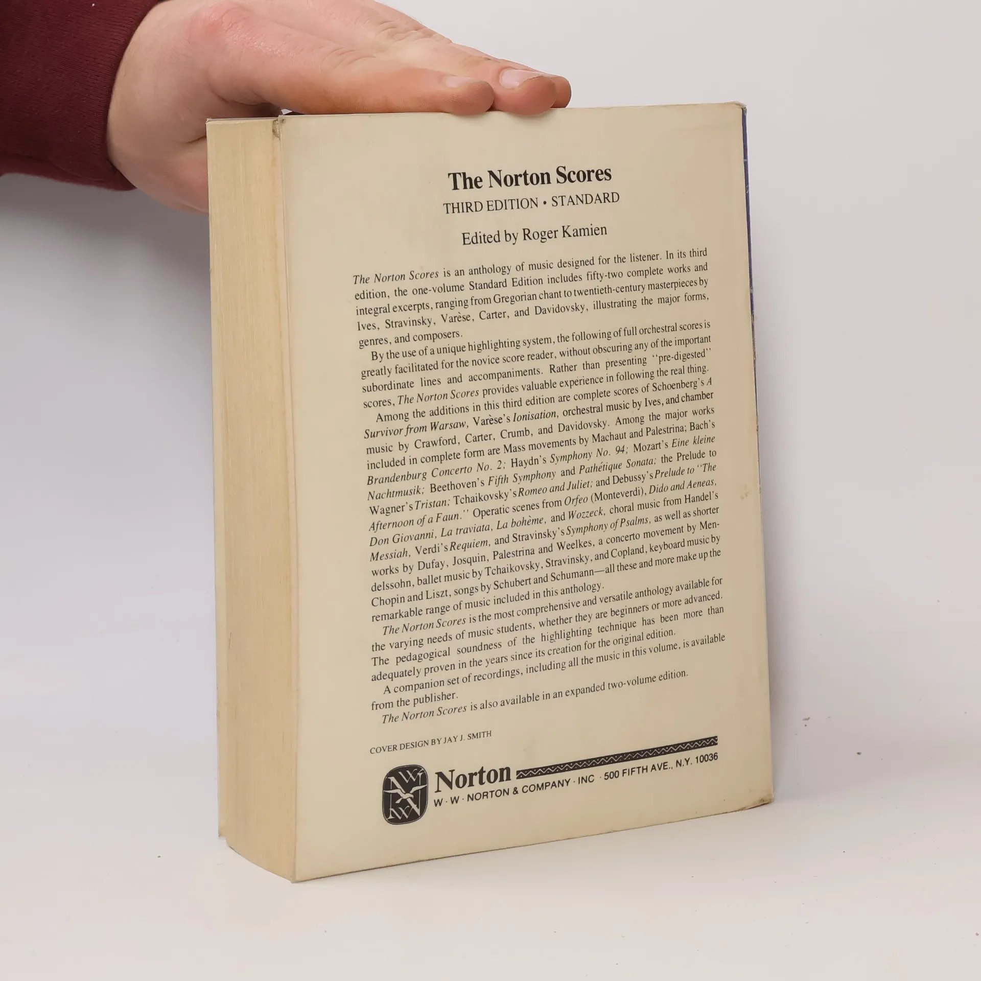"The Norton Scores is an anthology of music designed for the listener. In its third edition, the one-volume Standard Edition includes fifty-two complete works and integral excerpts, ranging from Gregorian chant to twentieth-century masterpieces by Ives, Stravinsky, Varèse, Carter, and Davidovsky, illustrating the major forms, genres, and composers. By the use of a unique highlighting system, the following of full orchestral scores is greatly facilitated for the novice score reader, without obscuring any of the important subordinate lines and accompaniments. Rather than presenting 'pre-digested' scores, The Norton Scores provides valuable experience in following the real thing...The Norton Scores is the most comprehensive and versatile anthology available for the varying needs of music students, whether they are beginners or more advanced. The pedagogical soundness of the highlighting technique has been more than adequately proven in the years since its creation for the original edition. A companion set of recordings, including all the music in this volume, is available from the publisher." -- Back cover