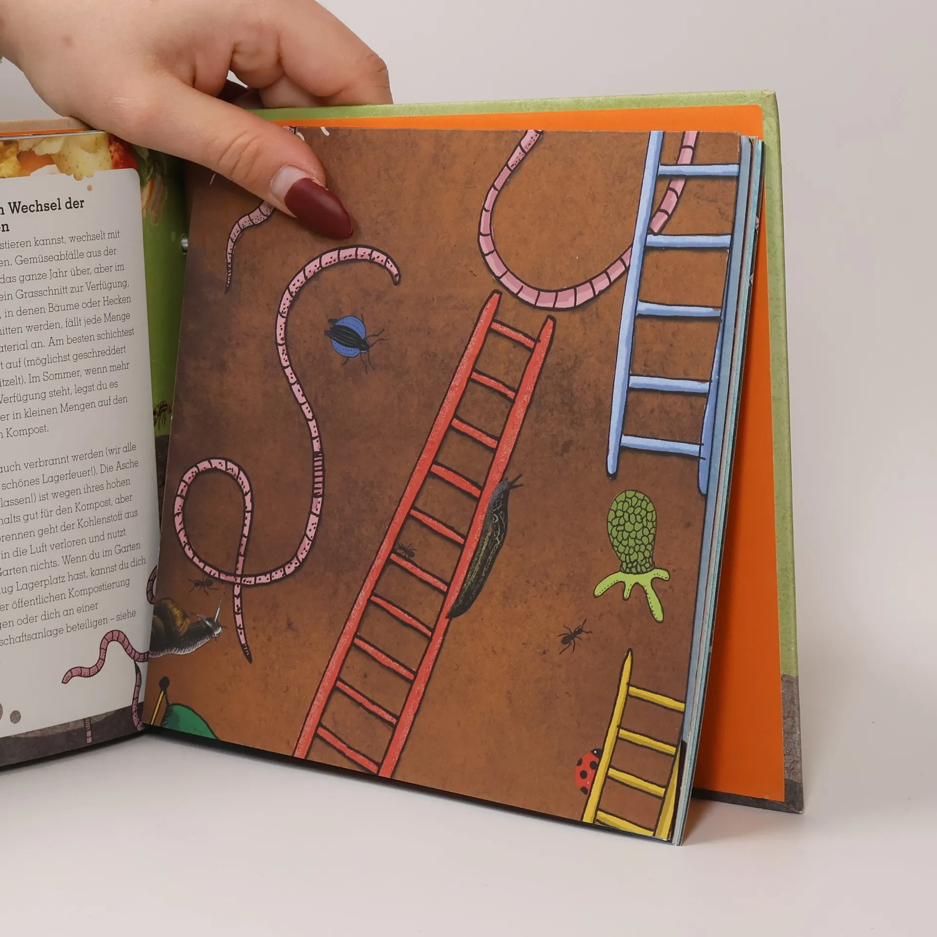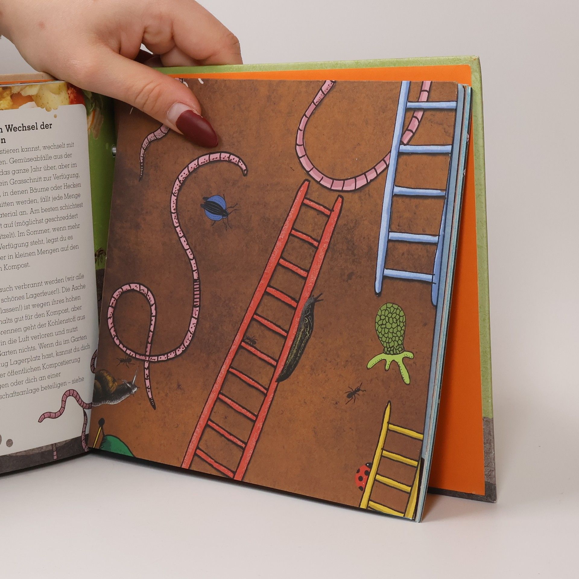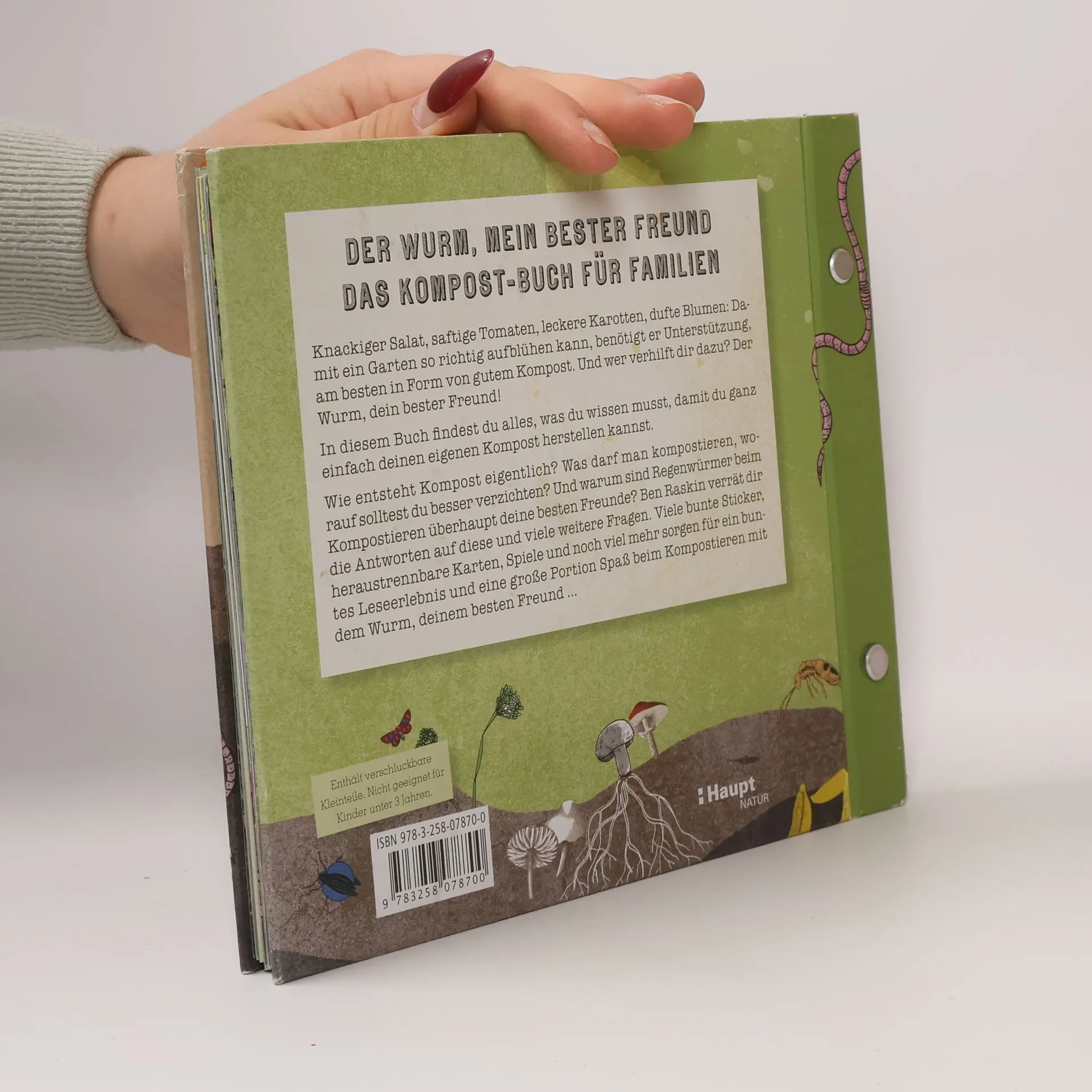 Ein humorvoller, kindgerechter Naturführer (für Kinder ab 6 Jahren) in die Welt des Komposts. Reich und ungewöhnlich ausgestattet mit Stickern, einer Drehscheibe, herausnehmbaren Spielplänen etc. Schritt-für-Schritt-Anleitung zum Aufbau eines eigenen Komposthaufens. Knackiger Salat, saftige Tomaten, leckere Karotten, dufte Blumen: Damit ein Garten so richtig aufblühen kann, benötigt er Unterstützung, am besten in Form von gutem Kompost. Wie entsteht Kompost eigentlich? Was darf man kompostieren, worauf sollte man besser verzichten? Und warum sind Regenwürmer beim Kompostieren überhaupt die besten Freunde? Ben Raskin verrät die Antworten auf diese und viele weitere Fragen. Viele bunte Sticker, heraustrennbare Karten, Spiele und noch viel mehr sorgen für ein buntes Leseerlebnis und eine große Portion Spaß beim Kompostieren mit dem Wurm, dem besten Freund …