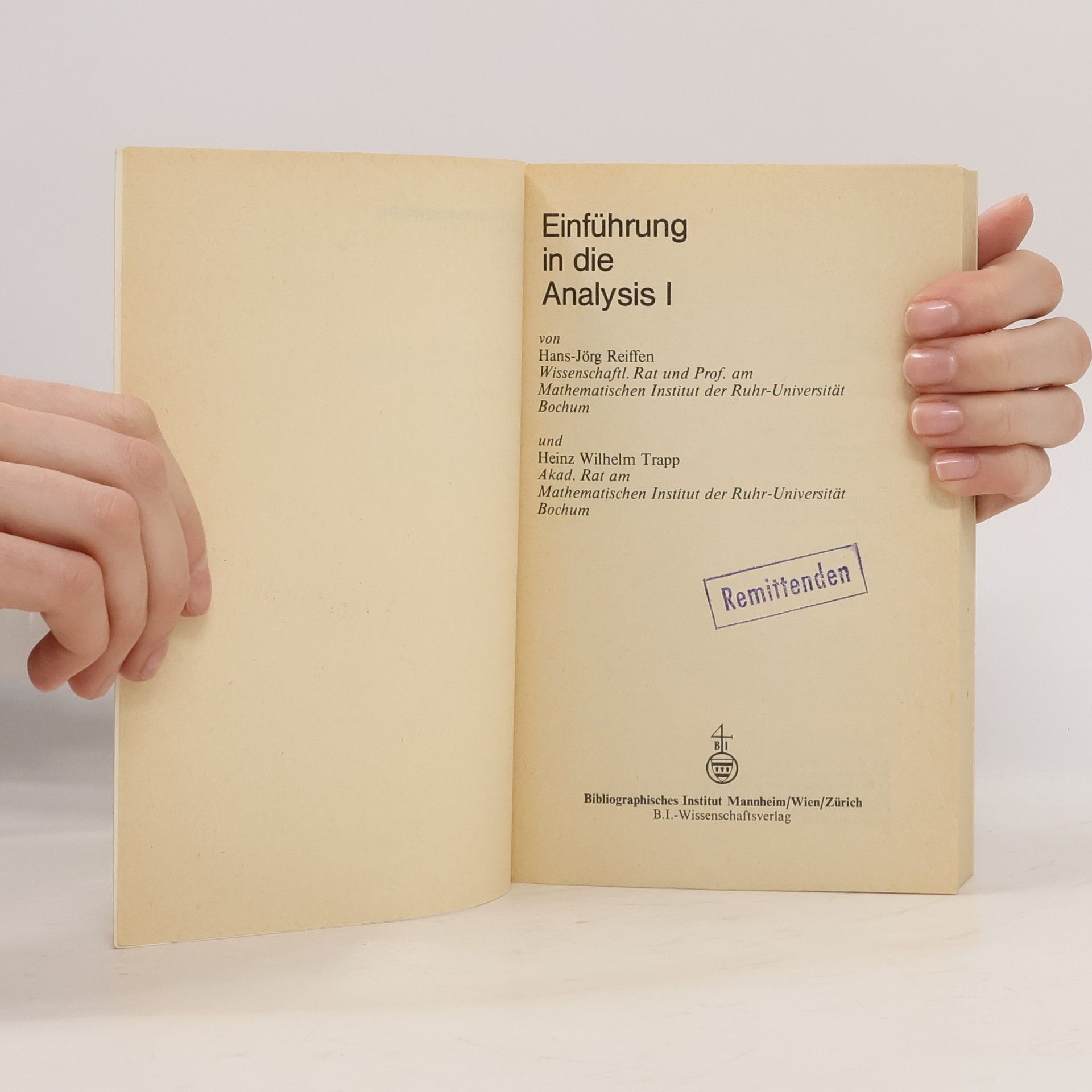 Hochschultaschenbücher - 776: Einführung in die Analysis, Hans-Jörg Reiffen, Heinz Wilhelm Trapp