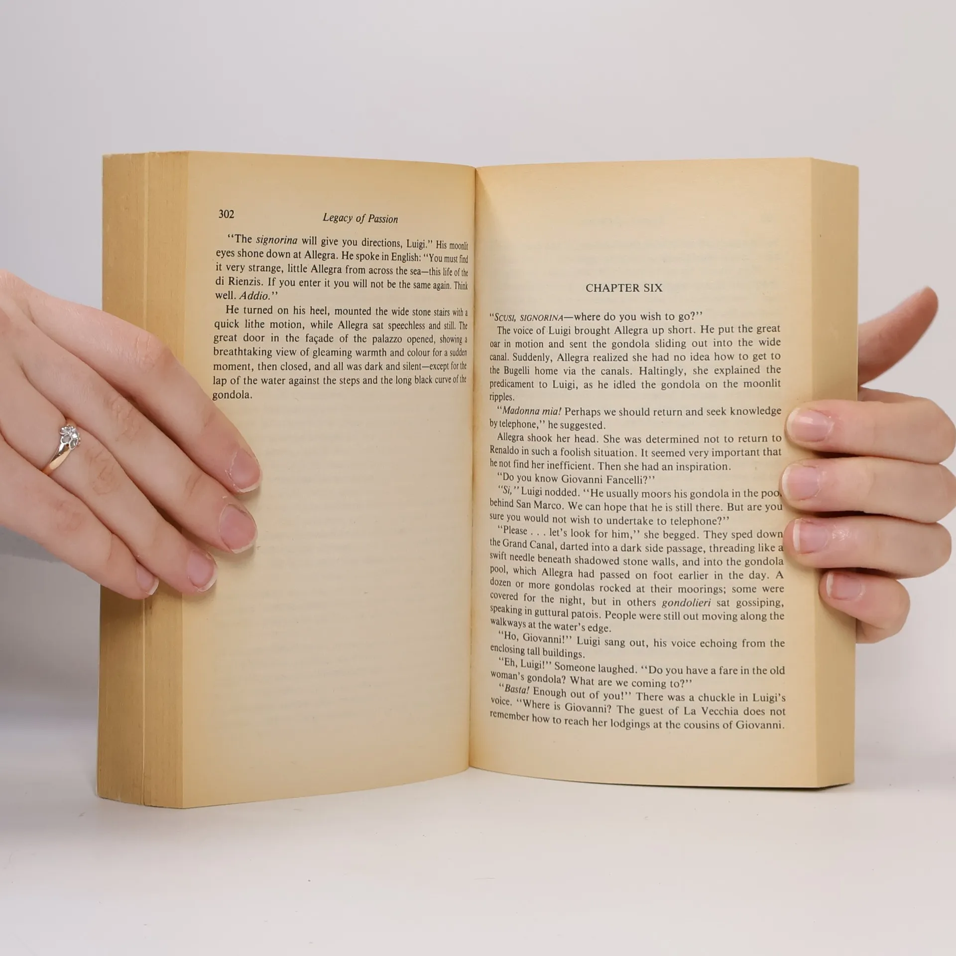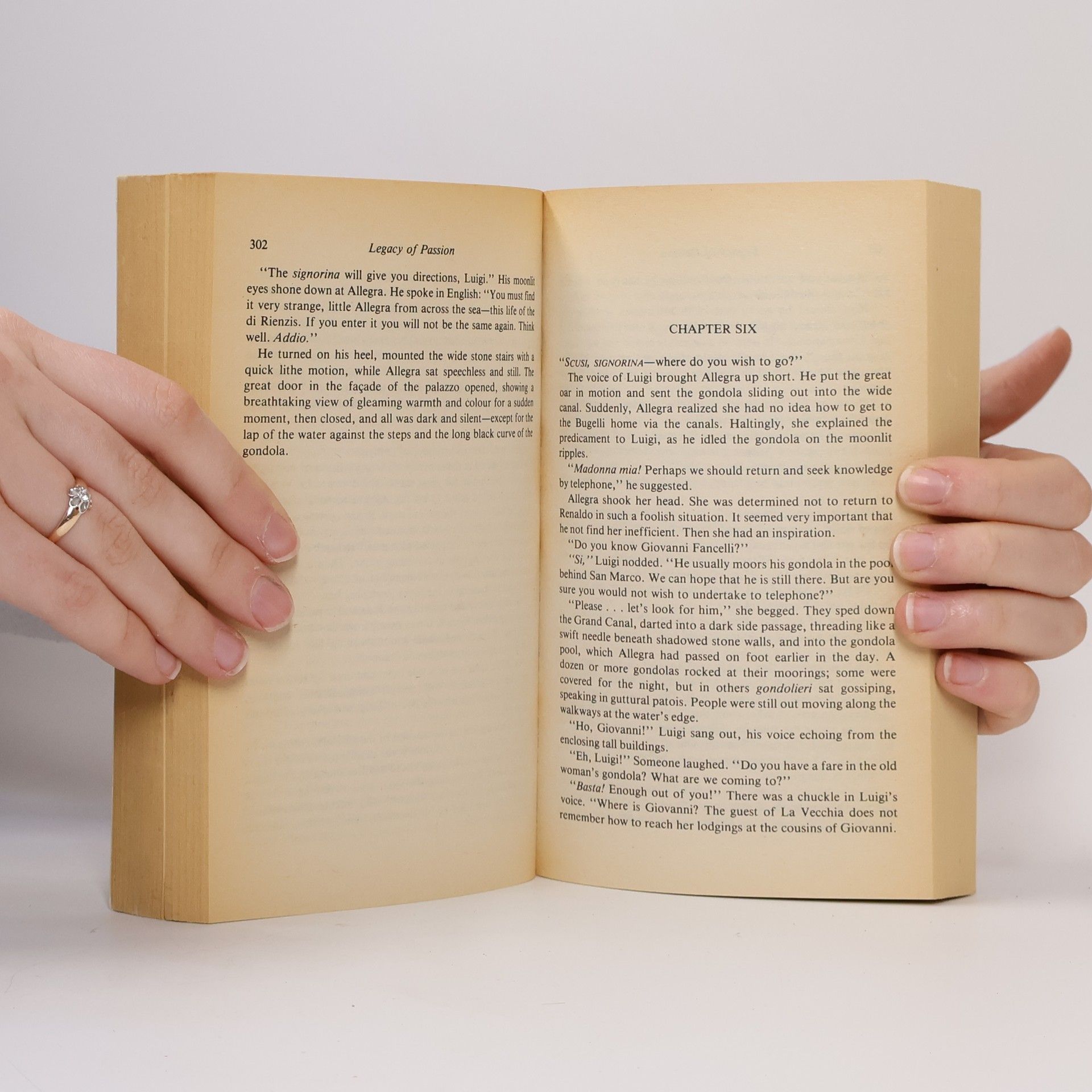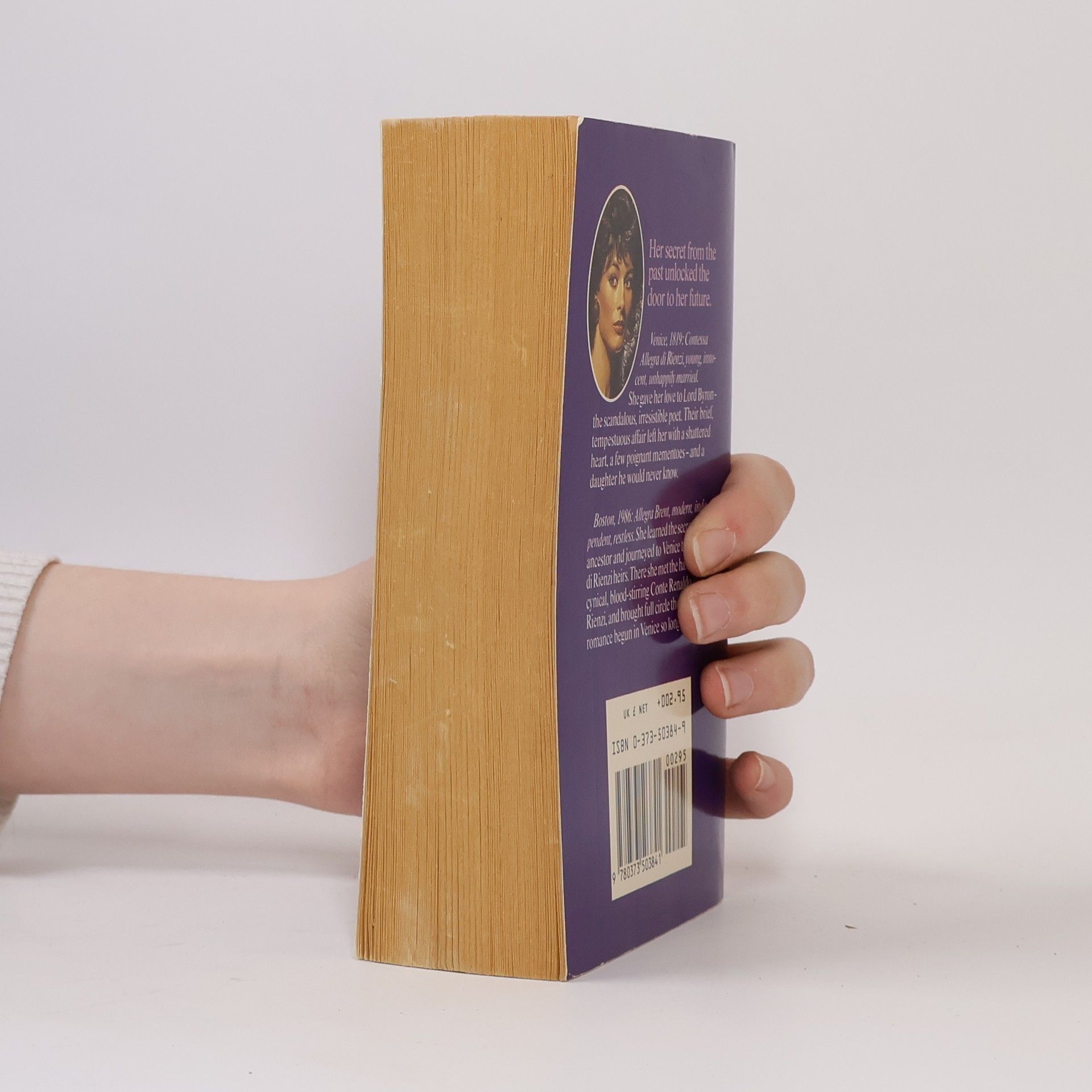 Venice, 1819: Contessa Allegra di Rienzi - young, innocent, unhappily married. She gave her love to Lord Byron - scandalous, irresistible English poet. their brief tempestuous affair left her with a shattered heart, a few poignant mementos - and a daughter he never knew about. Boston, today: Allegra Brent - modern, independent, restless. She learned the secret of her ancestor and journeyed to Venice to find the di Rienzi heirs. There she met the handsome, cynical, blood-stirring Conte Renaldo di Rienzi, and brought full circle the passionate romance begun in Venice so long ago....