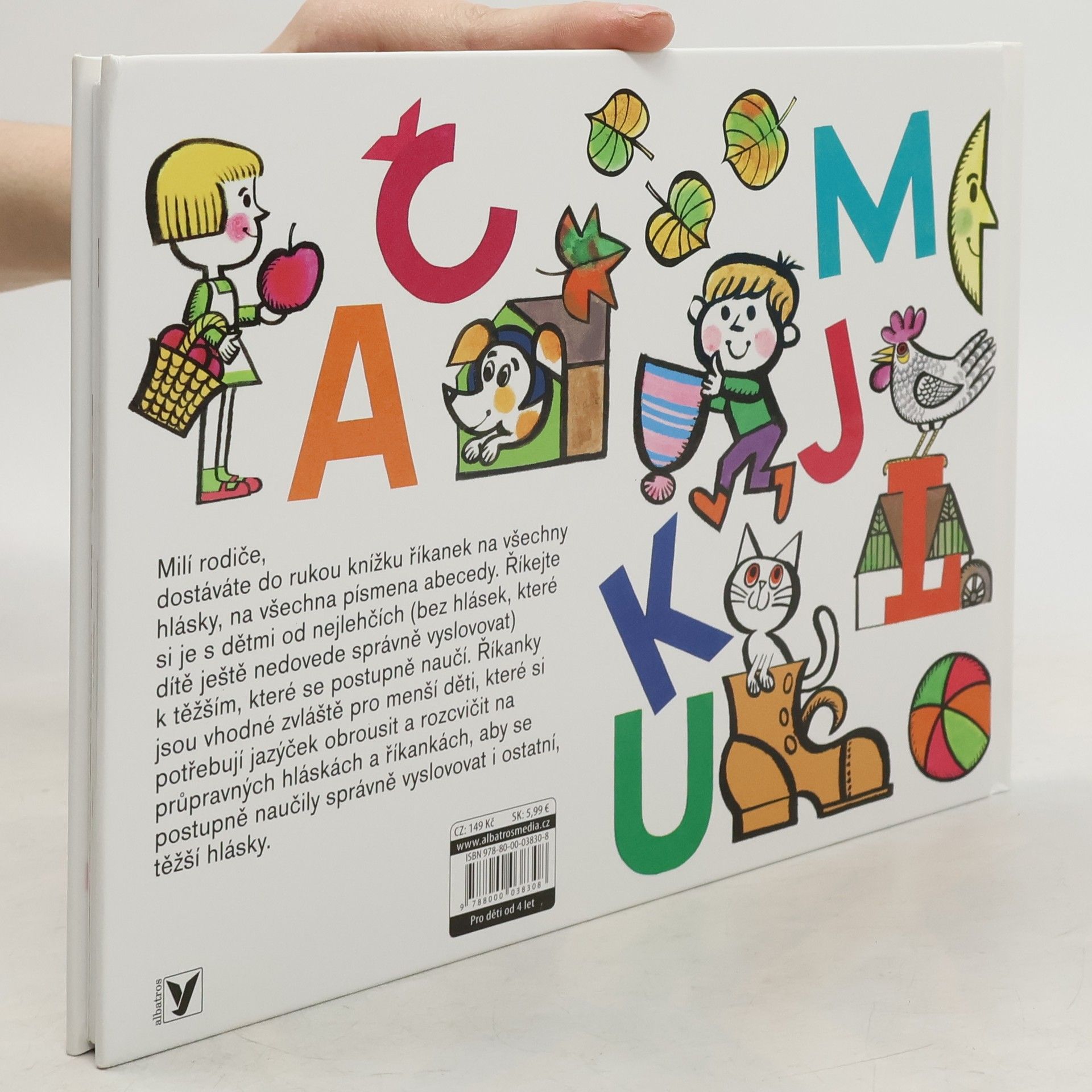 Populární knížka říkanek určená rodičům a dětem. Říkánky jsou vhodné zvláště pro menší děti, které si potřebují jazýček obrousit a rozcvičit na průpravných hláskách, aby se postupně naučily správně vyslovovat i ostatní, těžší hlásky. Jsou zde říkánky na všechna písmenka abecedy. Díky své velké oblibě vychází kniha v Albatrosu již pojedenácté.