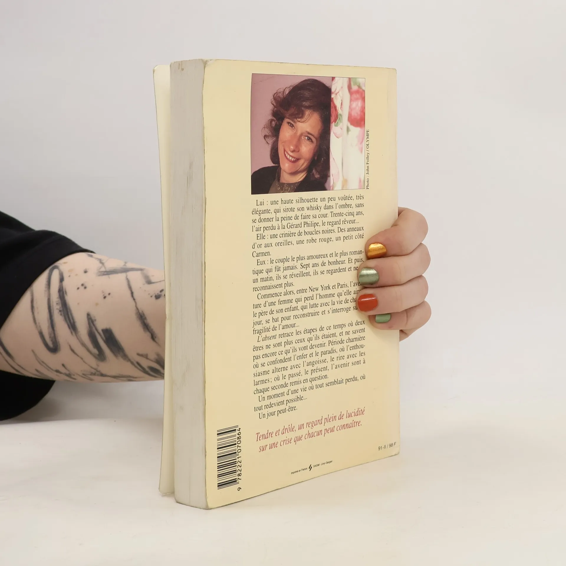 une haute silhouette un peu voûtée, très élégante, qui sirote son whisky dans l'ombre, sans se donner la peine de faire sa cour. Trente-cinq ans, l'air perdu à la Gérard Philippe, le regard rêveur... une crinière de boucles noires. Des anneaux d'or aux oreilles, une robe rouge, un petit côté Carmen. le couple le plus amoureux, le plus romantique qui fût jamais. Sept ans de bonheur. Et puis un matin, ils se réveillent , ils se regardent et ne se reconnaissent plus.Commence alors, entre New York et Paris, l'aventure d'une femme qui perd l'homme qu'elle aime, le père de son enfant, qui lutte avec la vie de chaque jour, se bat pour reconstruire et s'interroge sur la fragilité de l'amour...L'Absent retrace les étapes de ce temps où deux êtres ne sont plus ceux qu'ils étaient, et ne savent pas encore ce qu'ils vont devenir. Période charnière où se confondent l'enfer et le paradis, où l'enthousiasme alterne avec l'angoisse, le rire avec les larmes; où le passé, le présent, l'avenir sont à chaque seconde remis en question.Un moment d'une vie où tout semblait perdu, où tout redevient possible...Un jour peut-être.Tendre et drôle, un regard plein de lucidité sur une crise que chacun peut connaître.