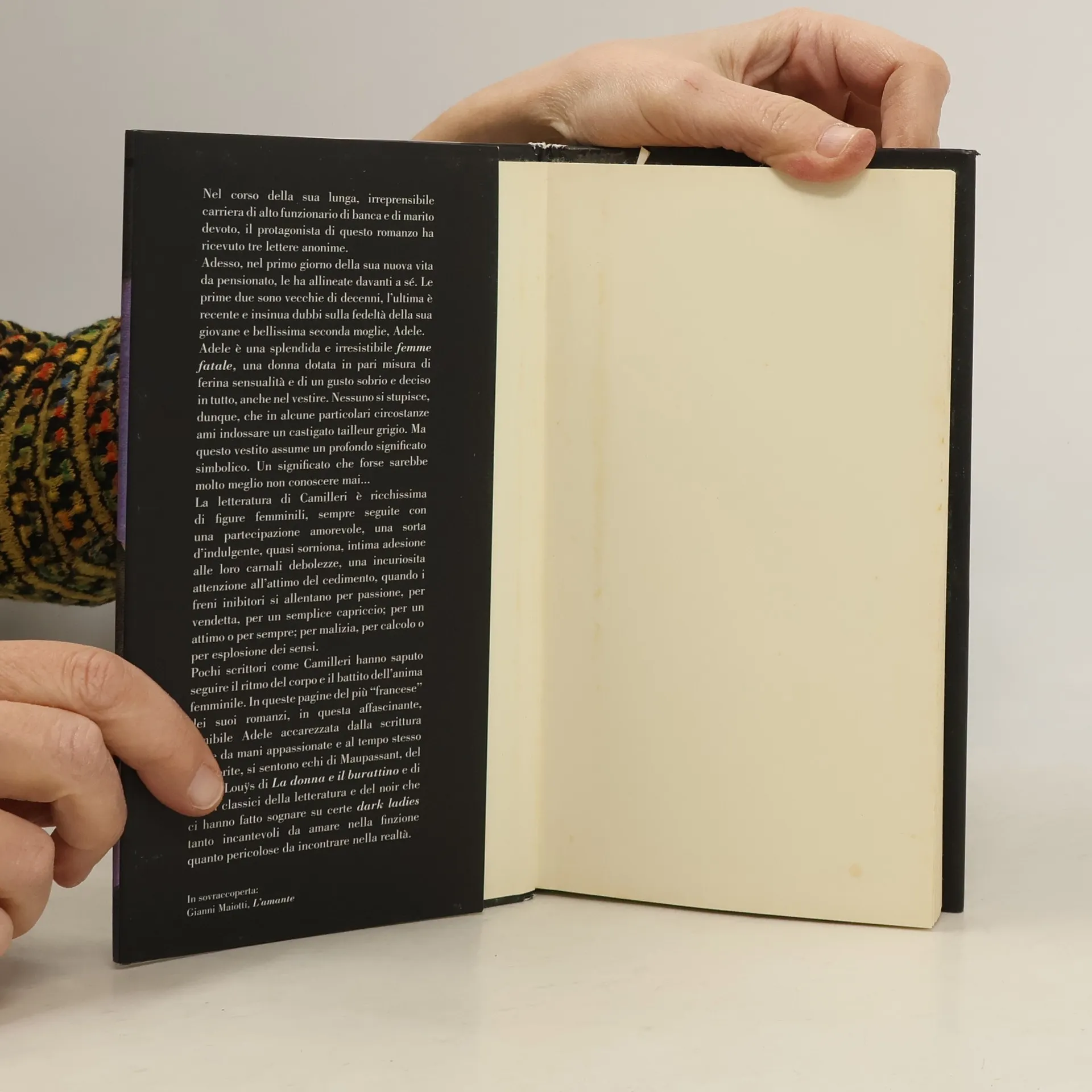 Nel corso della sua lunga, irreprensibile carriera di alto funzionario di banca e di marito devoto, il protagonista di questo romanzo ha ricevuto tre lettere anonime. Le prime due sono vecchie di decenni, l'ultima è recente e insinua dubbi sulla fedeltà della sua giovane e bellissima seconda moglie, Adele, una splendida e irresistibile femme fatale, una donna dotata in pari misura di ferina sensualità e di un gusto sobrio e deciso in tutto, anche nel vestire. Non stupisce nessuno, dunque, che in alcune particolari circostanze ami indossare un castigato tailleur grigio. Ma questo vestito assume un profondo significato simbolico. Un significato che forse sarebbe molto meglio non conoscere mai...<br />Pochi scrittori come Camilleri hanno saputo seguire il ritmo del corpo e il battito dell'anima femminile. In queste pagine del più "francese" dei suoi romanzi, in questa affascinante, temibile Adele accarezzata dalla scrittura come da mani appassionate e al tempo spesso intimorite, si sentono echi di Maupassant e di tutti i classici della letteratura e del noir che ci hanno fatto sognare su certe dark ladies tanto incantevoli da amare nella finzione quanto pericolose da incontrare nella realtà.