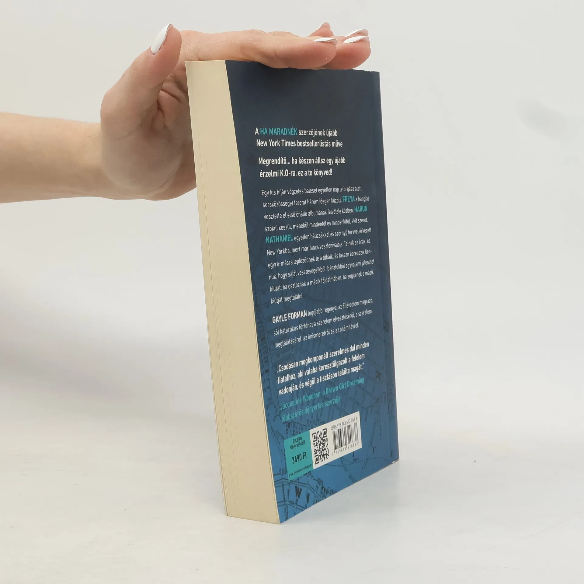A Ha maradnék szerzőjének újabb New York Times bestsellerlistás műve Megrendítő… ha készen állsz egy újabb érzelmi K.O.-ra, ez a te könyved! Egy kis híján végzetes baleset egyetlen nap leforgása alatt sorsközösséget teremt három idegen között. Freya a hangját vesztette el első önálló albumának felvétele közben. Harun szökni készül, menekül mindentől és mindenkitől, akit szeret. Nathaniel egyetlen hátizsákkal és szörnyű tervvel érkezett New Yorkba, mert már nincs vesztenivalója. Telnek az órák, és egyre-másra lepleződnek le a titkaik, és lassan ébredezik bennük, hogy saját veszteségeikből, bánatukból egyvalami jelenthet kiutat: ha osztoznak a másik fájdalmában, ha segítenek a másik kiútját megtalálni. Gayle Forman legújabb regénye, az Eltévedtem megrázó, sőt katartikus történet a szerelem elvesztéséről, a szerelem megtalálásáról, az önismeretről és az önámításról. “Csodásan megkomponált szerelmes dal minden fiatalhoz, aki valaha keresztülgázolt a félelem vadonján, és végül a tisztáson találta magát.” Jacqueline Woodson, a Brown Girl Dreaming többszörös díjnyertes szerzője