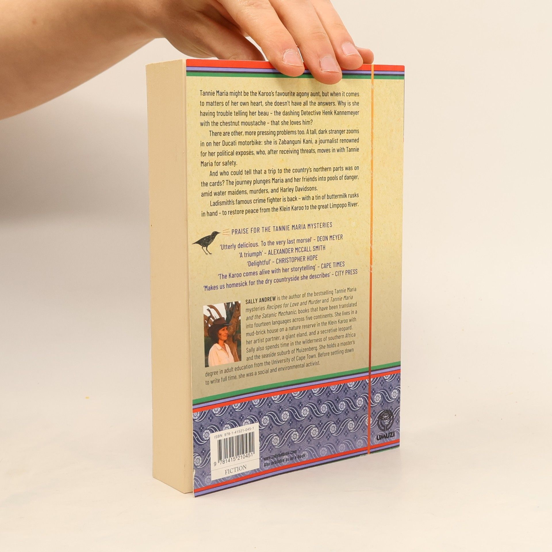 Tannie Maria might be the Karoo’s favourite agony aunt, but when it comes to matters of her own heart, she doesn’t have all the answers. Why is she having trouble telling her beau – the dashing Detective Henk Kannemeyer with the chestnut moustache – that she loves him? There are other, more pressing problems too. A tall, dark stranger zooms in on her Ducati motorbike: she is Zabanguni Kani, a journalist renowned for her political exposés, who, after receiving threats, moves in with Tannie Maria for safety. And who could tell that a trip to the country’s northern parts was on the cards? The journey plunges Maria and her friends into pools of danger, amid water maidens, murders, and Harley Davidsons. Ladismith’s famous crime fighter is back – with a tin of buttermilk rusks in hand – to restore peace from the Klein Karoo to the great Limpopo River.