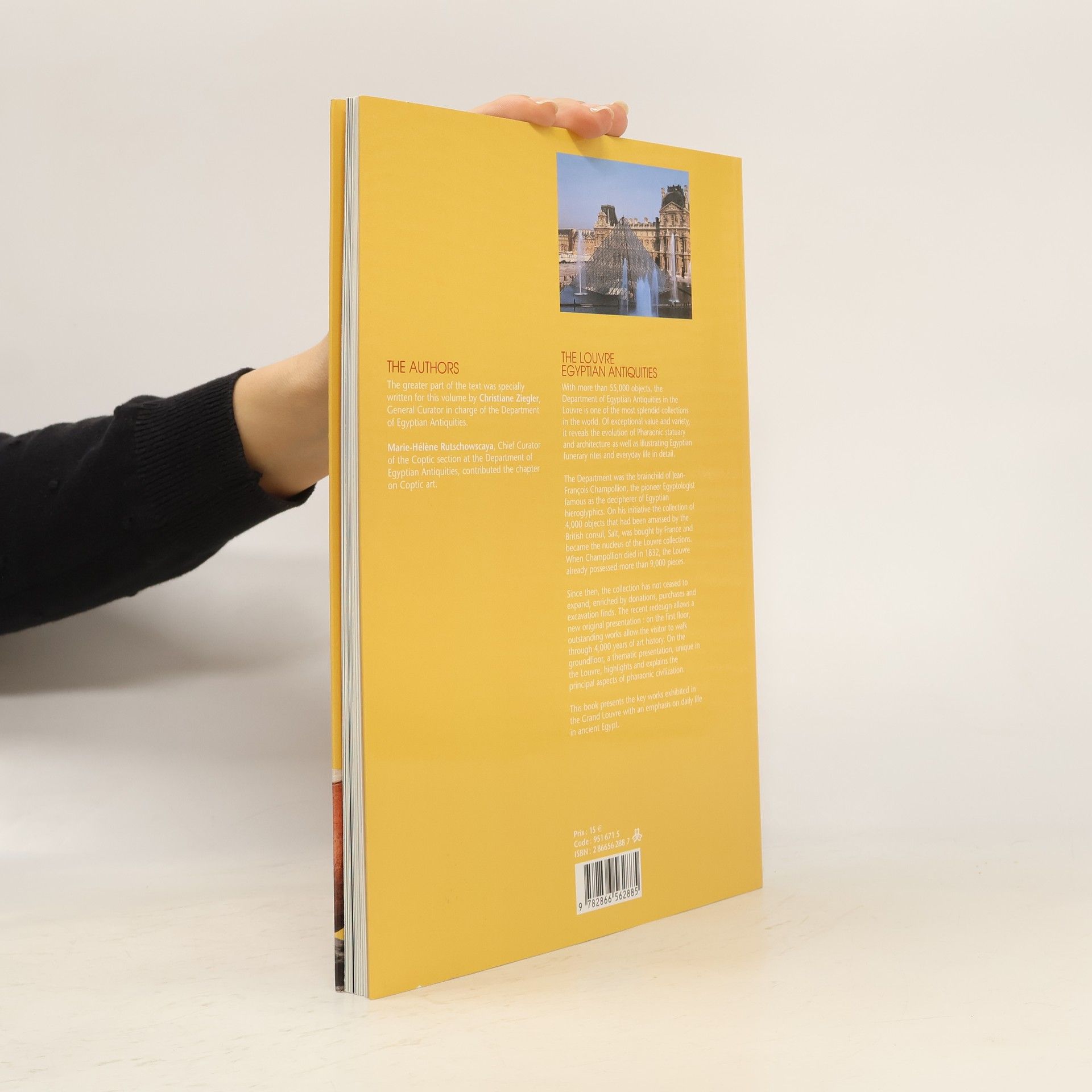 With more than 55,000 objects, the Department of Egyptian Antiquities in the Louvre is one of the most splendid collections in the world. Of exceptional value and variety, it reveals the evolution of Pharaonic statuary and architecture as well as illustrating Egyptian funerary rites and everyday life in detail. The Department was the brainchild of Jean-François Champollion, the pioneer Egyptologist famous as the decipherer of Egyptian hieroglyphics. On his initiative the collection of 4,000 objects that had been amassed by the British consul, Salt, was bought by France and became the nucleus of the Louvre collections. When Champollion died in 1832, the Louvre already possessed more than 9,000 pieces. Since then, the collection has not ceased to expand, enriched by donations, purchases and excavation finds. The recent redesign allows a new original presentation: on the first floor, outstanding works allow the visitor to walk through 4,000 years of art history. On the groundfloor, a thematic presentation, unique in the Louvre, highlights and explains the principal aspects of pharaonic civilization. This book presents the key works exhibited in the Grand Louvre with an emphasis on daily life in ancient Egypt.