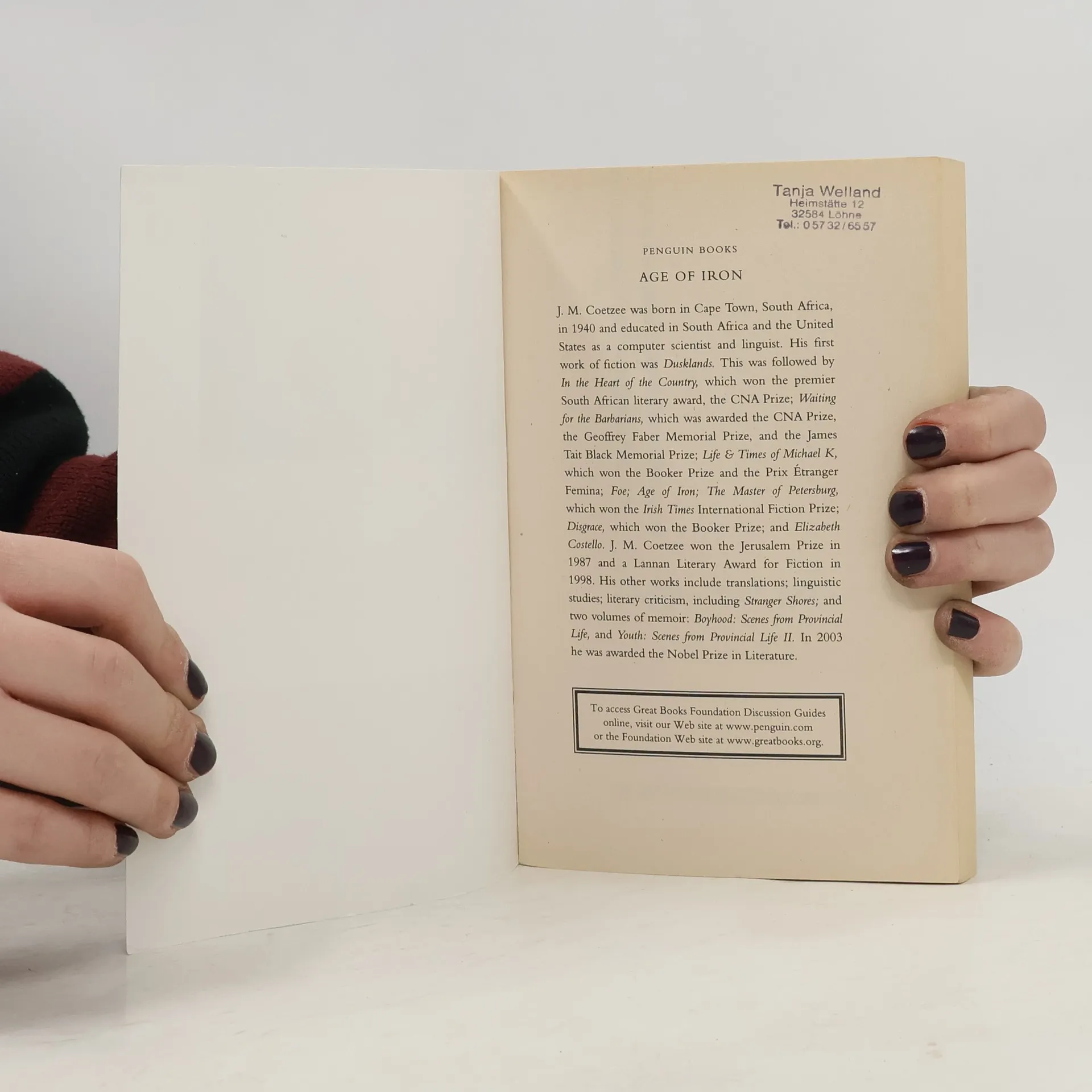 In Cape Town, South Africa, an old woman is dying of cancer. A classics professor, Mrs. Curren has been opposed to the lies and brutality of apartheid all her life, but has lived insulated from its true horrors. Now she is suddenly forced to come to terms with the iron-hearted rage that the system has wrought. In an extended letter addressed to her daughter, who has long since fled to America, Mrs. Curren recounts the strange events of her dying days. She witnesses the burning of a nearby black township and discovers the bullet-riddled body of her servant's son. A teenage black activist hiding in her house is killed by security forces. And through it all, her only companion, the only person to whom she can confess her mounting anger and despair, is a homeless man, an alcoholic, who one day appears on her doorstep. Brilliantly crafted and resonant with metaphor, Age of Iron is "a superbly realized novel whose truths cut to the bone." ( The New York Times Book Review )
