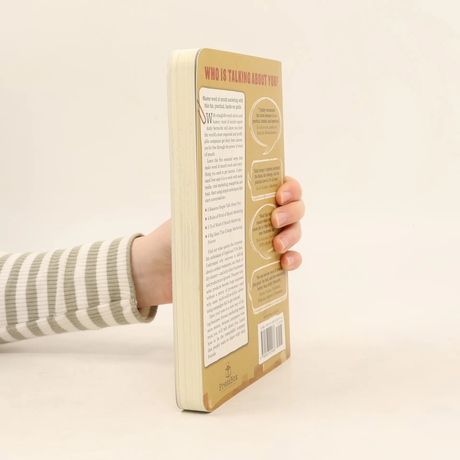 With straightforward advice and humour, word of mouth expert Andy Sernovitz will show you how the world's most respected and profitable companies get their best customers for free through the power of word of mouth. Learn the five essential steps that make word of mouth work and everything you need to get started. Understand how easy it is to work with social media, viral marketing, evangelists, and buzz. Start using simple techniques that start conversations: 3 Reasons People Talk About You; 4 Rules of Word of Mouth Marketing; 5 Ts of Word of Mouth Marketing; 6 Big Ideas: Deep Stuff That Changes Marketing Forever. Find out what sparks the irrepressible enthusiasm of Apple and TiVo fans. Understand why everyone is talking about a certain restaurant, car, band, or dry cleaner -- and why other businesses and products are ignored. Discover why some products become huge successes without a penny of promotion -- and why some multi-million-dollar advertising campaigns fail to get noticed. Open your eyes to a new way of doing business: Honest marketing makes more money, because customers who trust you will talk about you. Learn how to be the remarkable company that people want to share with their friends.