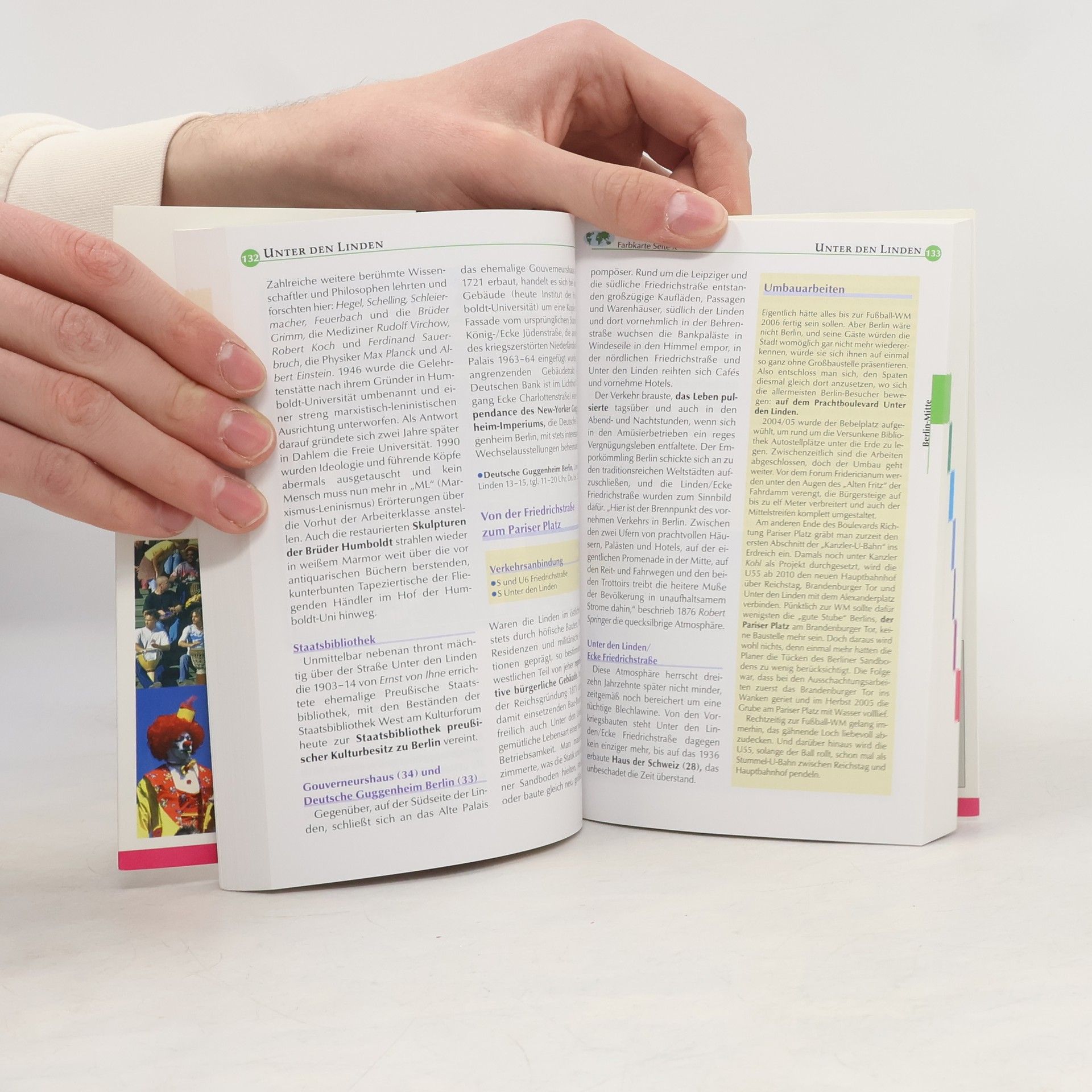 Der aktuelle City Guide durch die unbeständigste Metropole Europas. •Alle praktischen Tipps für einen erfolgreichen Citytrip von Informationsstellen bis Notfälle für Mensch und Auto •Unterkünfte für die Nacht von Hotels über Jugendherbergen bis zum Zeltplatz •Essen und Trinken für jeden Geschmack von arabisch über gutbürgerlich und Nouvelle Cuisine bis russisch •Shopping von Luxus über Schrill bis Trödel •Nightlife: die angesagten Adressen von Bars, Clubs, Diskotheken und Tanzcafés •Kultur und Kunst in ihrer vollen Breite von Museen und Galerien bis zu aktuellen Events •Auf Touren in Stadtmitte und den angrenzenden Bezirken Sehens- und Erlebenswertes entdecken •Ausflüge nach Potsdam, Spandau, Köpenick und Wannsee •Wissens- und Plaudernswertes über Berliner Geschichte und Gegenwart, über Berliner und Zugezogene, Großstadtleben und Kiezkultur •Exakte Fakten, aktuelle Adressen, genaue Preise, stimmige Wertungen Pressestimmen: Geo Spezial Nov. 2002, S. 171 „Der handliche Führer bietet Berlin-Tipps für jede Generation und Interessenlage plus einen Abstecher nach Postdam. Praktisch: der farbige Kartenatlas am Schluss.“ (Erwähnung an 1. Stelle, noch vor DuMont) ekz-Informationsdienst, 11/03: „Ein Buch zur schnellen und knappen Orientierung, das sich aufs Wesentliche konzentriert.“