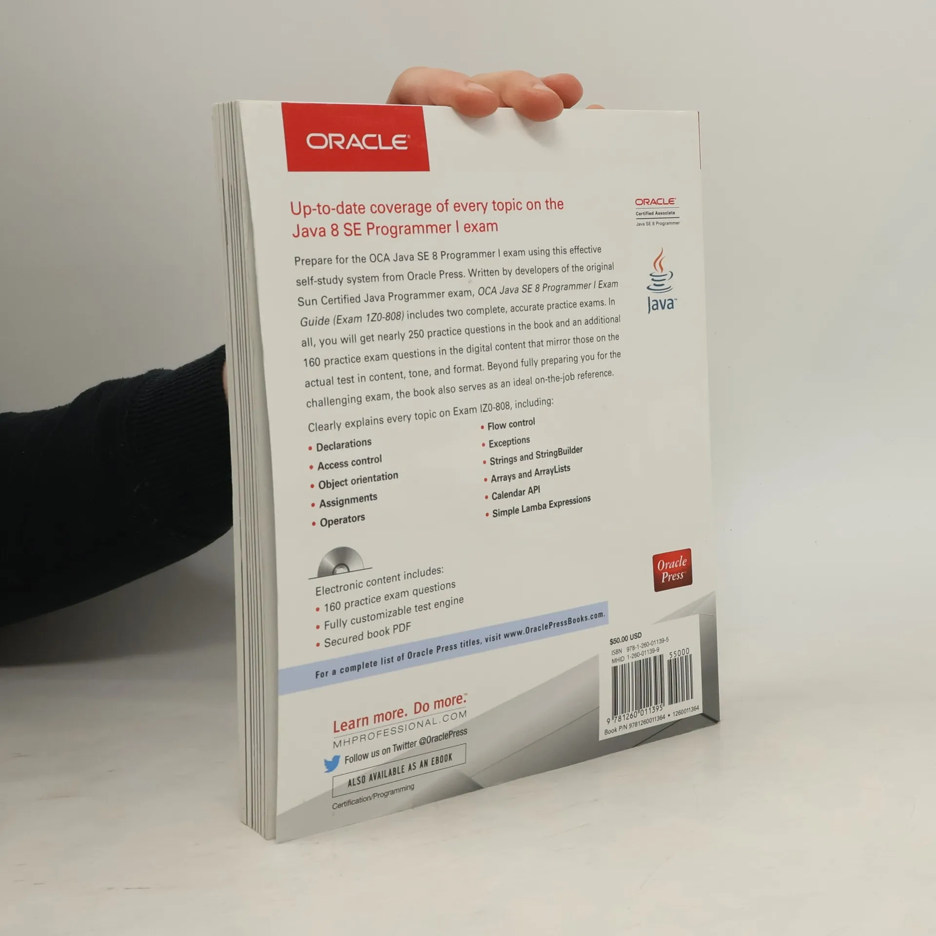 Publisher's Products purchased from Third Party sellers are not guaranteed by the publisher for quality, authenticity, or access to any online entitlements included with the product.Up-to-date coverage of every topic on the Java 8 SE Programmer I exam Prepare for the OCA Java SE 8 Programmer I exam using this effective self-study system from Oracle Press. Written by developers of the original Sun Certified Java Programmer exam, OCA Java SE 8 Programmer I Exam Guide (Exam 1Z0-808) includes two complete, accurate practice exams. In all, you will get more than 200 practice questions that mirror those on the actual test in content, tone, and format. Beyond fully preparing you for the challenging exam, the book also serves as an ideal on-the-job reference. Clearly explains every topic on Exam IZ0-808, • Declarations• Access control• Object orientation• Assignments• Operators• Flow control• Exceptions• Strings• Arrays• ArrayListsElectronic content • 200+ practice exam questions• Fully customizable test engine• Secured book PDF